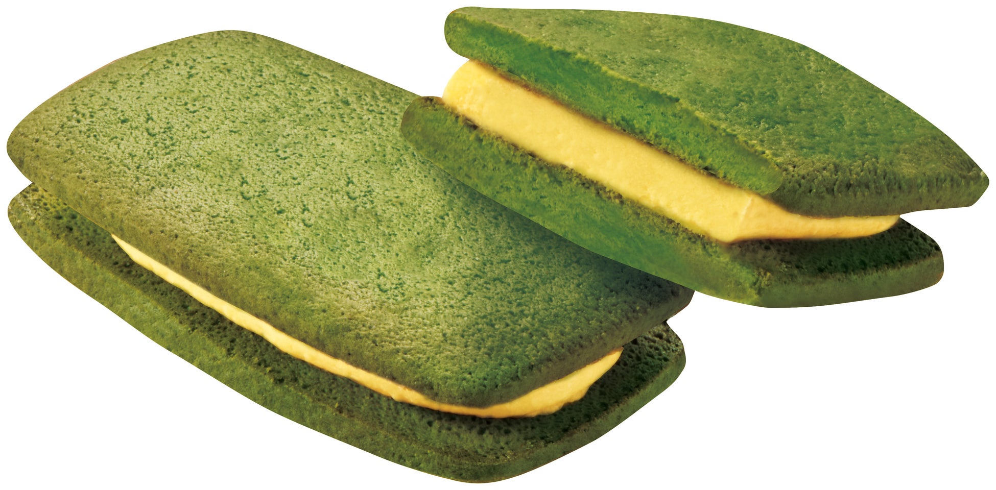 ・バター、ミルキーに使用しているれん乳、舟和の芋ようかんに使用しているさつまいもペーストを練り合わせたクリームを、鹿児島県産抹茶を使用した抹茶サブレでサンド