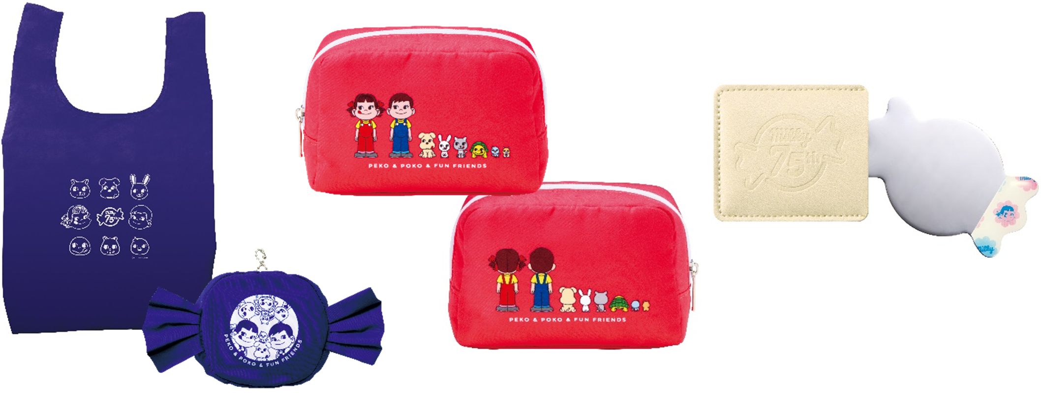 「ペコちゃんポコちゃんとゆかいな仲間たち」とミルキー75周年の特別なグッズも登場します。