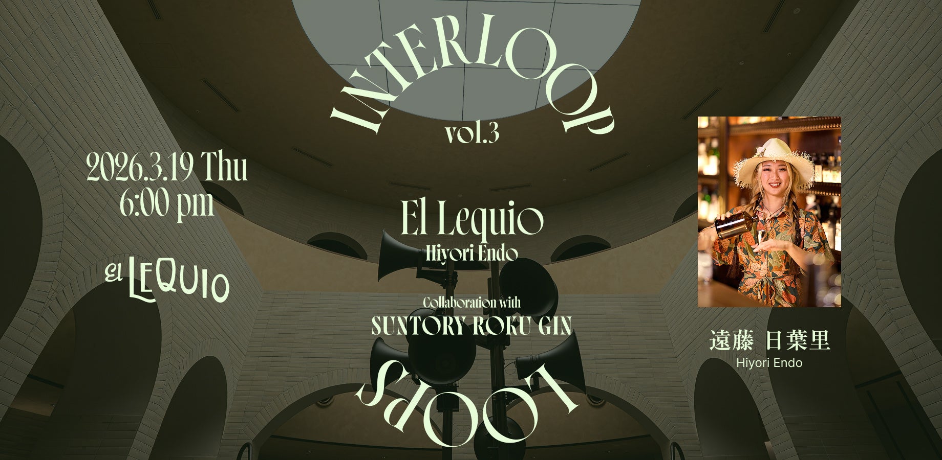 Asias 50 Best Bars に選出された、熊本の「夜香木」のバーテンダー木場進哉氏、カクテルバー&スタジオ「Quarter Room」のオーナーを務めるトップバーテンダー 野村空人氏に続いて、2026年3月20日(金)からスタートするVol.3では、沖縄「El Lequio(エルレキオ)」の遠藤日葉里氏をゲストに迎え、日本の四季が生んだ六種の和素材を使用したジャパニーズクラフトジン ROKU〈六〉を使った、ここだけの特別なカクテルとペアリングフードをご用意します。会期スタート前日の3月19日(木)には 遠藤氏をゲストに迎えたイベントを開催。さらに、3月26日(木)にはDJイベントの開催も予定しています。