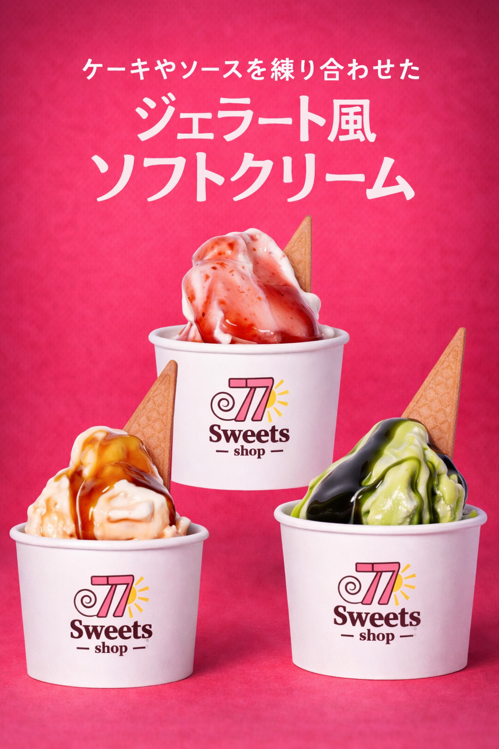 77Sweets shop 十条店の導入する「アイスは別腹」では岐阜県・関牛乳の生乳を使用した「リッチなミルク感」が特徴のソフトクリームを販売いたします。