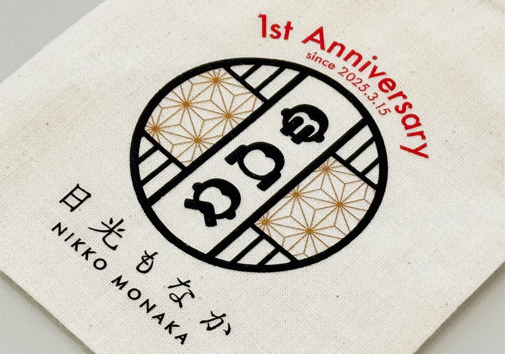 日光のシンボル「三猿」をモチーフにした、当店のロゴが並ぶ姿がかわいらしいデザインです。背景には、店内の装飾にも使われている伝統の「麻の葉模様」をあしらいました。日光らしさをギュッと詰め込んだ、今だけの特別な巾着です。