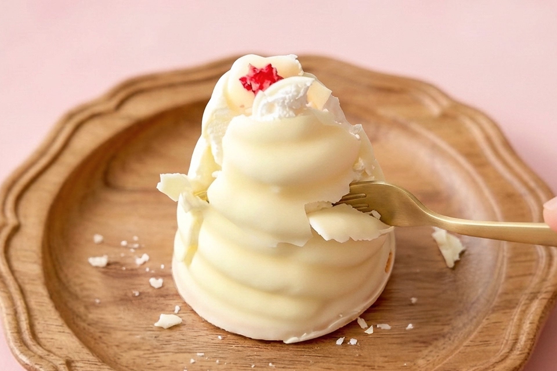 今回の「ホワイトシャンティ」は、外側のチョコレートをホワイトチョコレートで仕立てたホワイトデー限定仕様。外側をホワイトチョコにすることで、味わいはよりまろやかでミルキーに。苺の甘酸っぱさを引き立てながら、深く濃密なコクが加わり、“ショートケーキ感”がさらにUP!