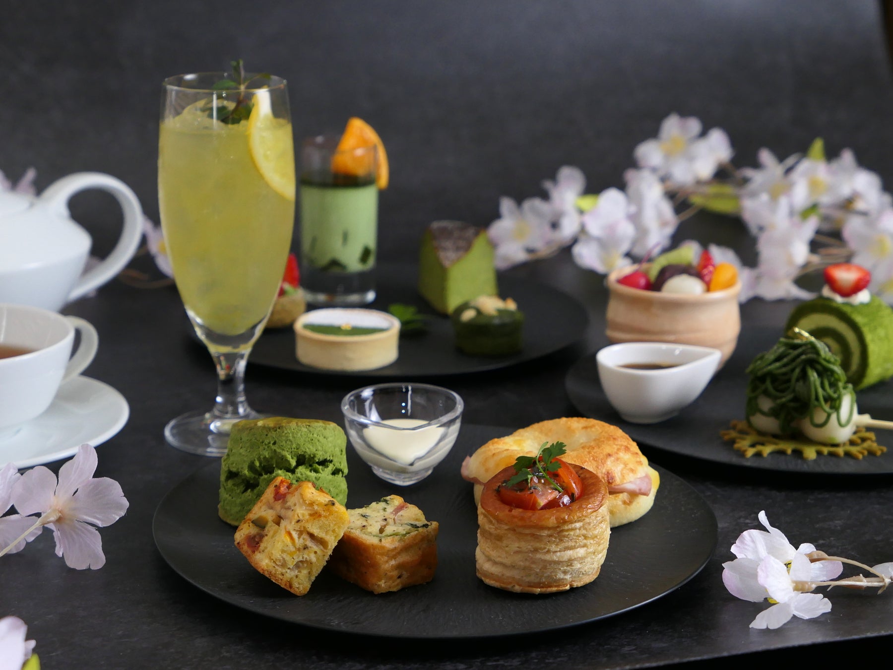 鮮やかな濃緑が印象的な静岡抹茶を主役に、一皿一皿に奥行きを表現。和と洋が調和する、品格ある初夏のアフタヌーンティーをご用意いたしました。