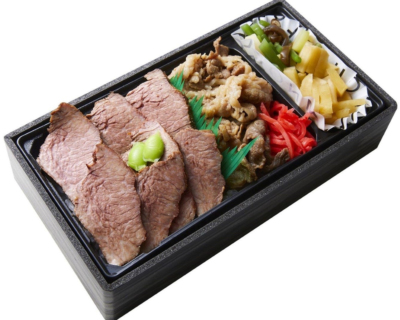 宮崎牛の2種の味わいの赤身を豪快に乗せたお弁当です。