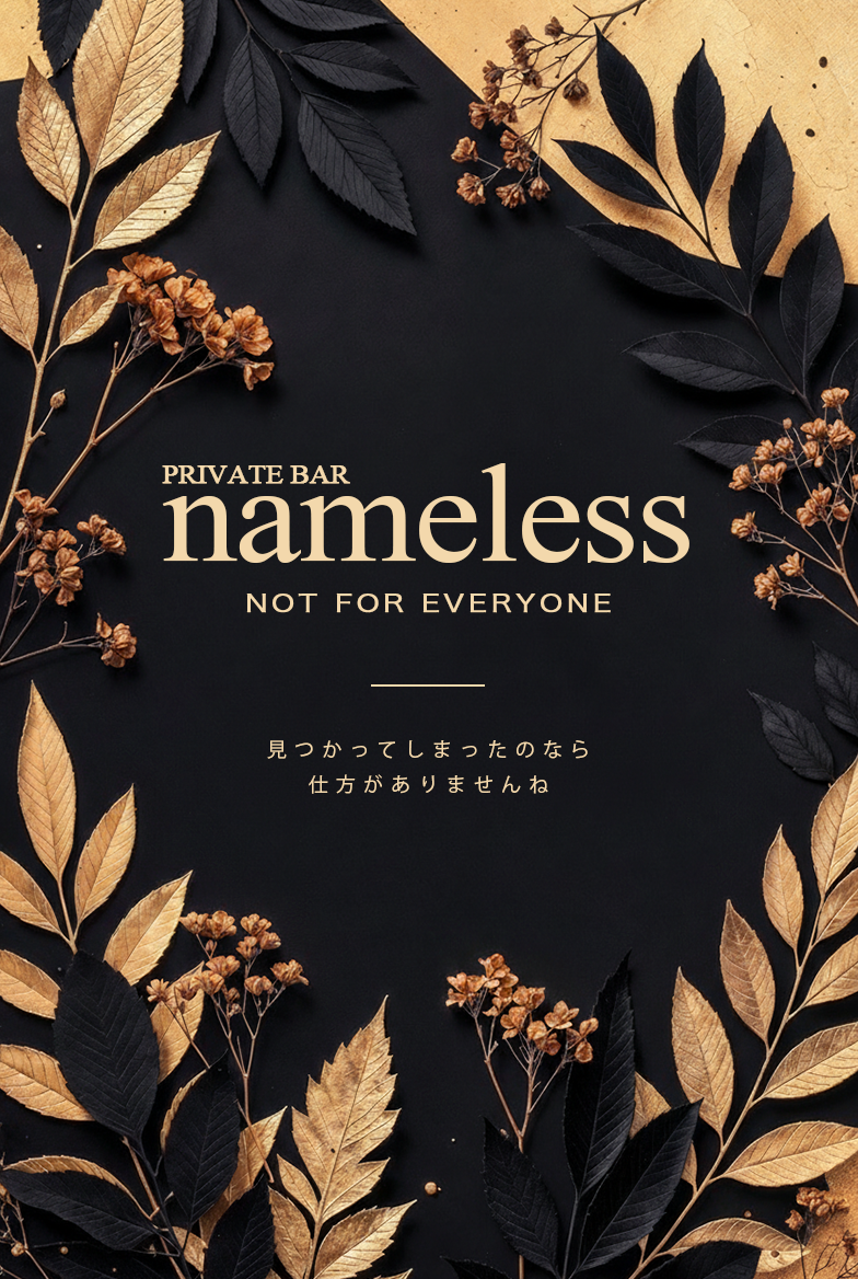 もしあなたが、偶然にもこの「nameless(ネームレス)」の入り口へと繋がる糸を見つけてしまったのなら、それは祝福すべきだ。ヴァンパイアたちの巧妙な罠に落ちたのか、あるいはあなたの魂がヴァンパイアに共鳴したのか。公式LINEやホームページの向こう側で待っています。
