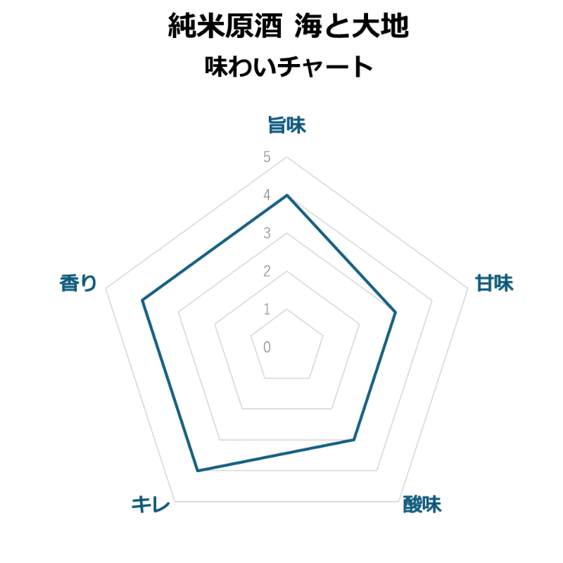今年の「海と大地」は低温仕込みにより、雑味を感じさせないクリアで透明感のある味わいに仕上がりました。口当たりはやわらかく、すっと引いていくキレの良さが特長で、食中酒としてはもちろん、様々なシーンでお楽しみいただけます。