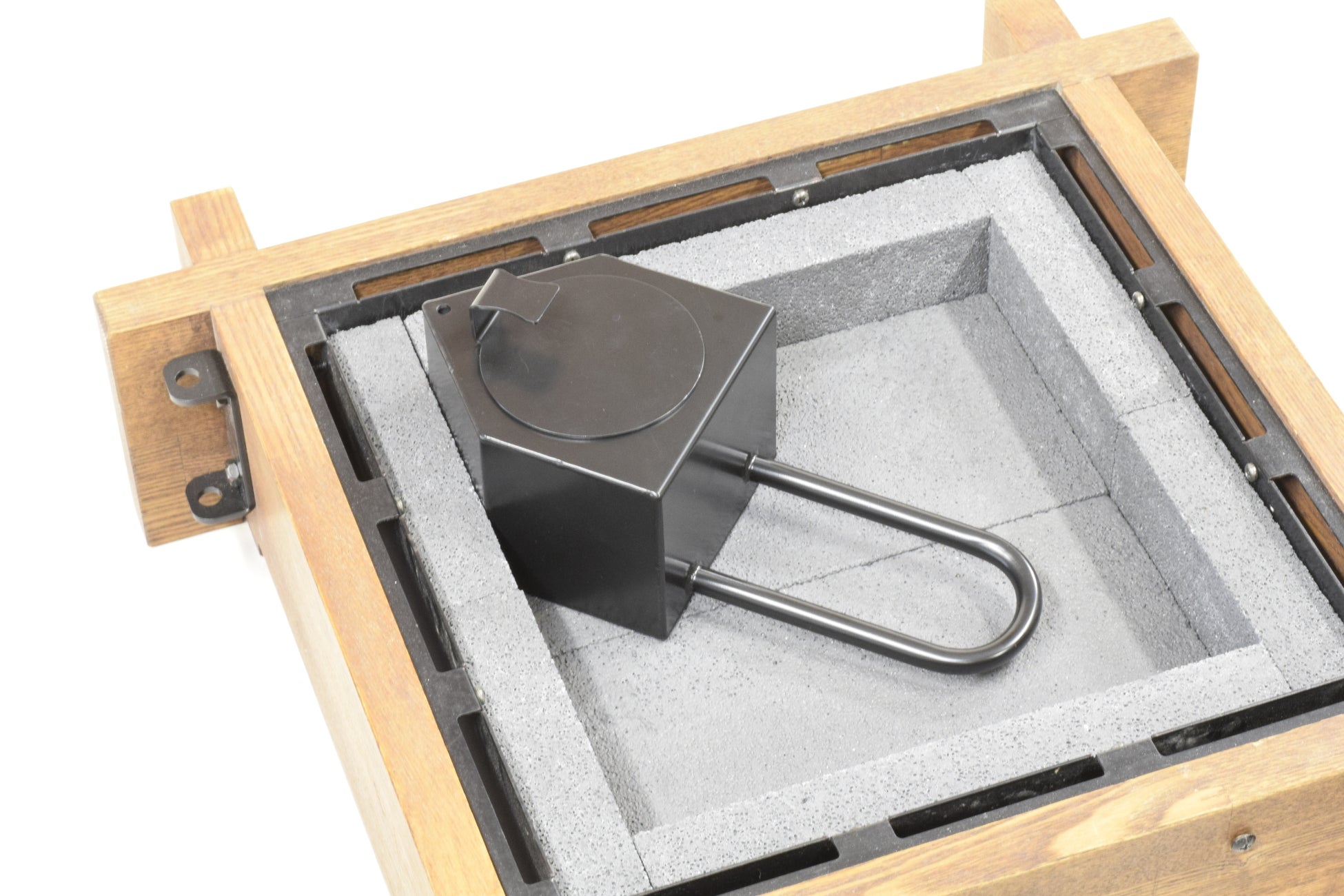 七輪・囲炉裏・火鉢などの日本の炭火文化を結集し、日本の伝統美と機能性を兼ね備えた一台として完成いたしました。
