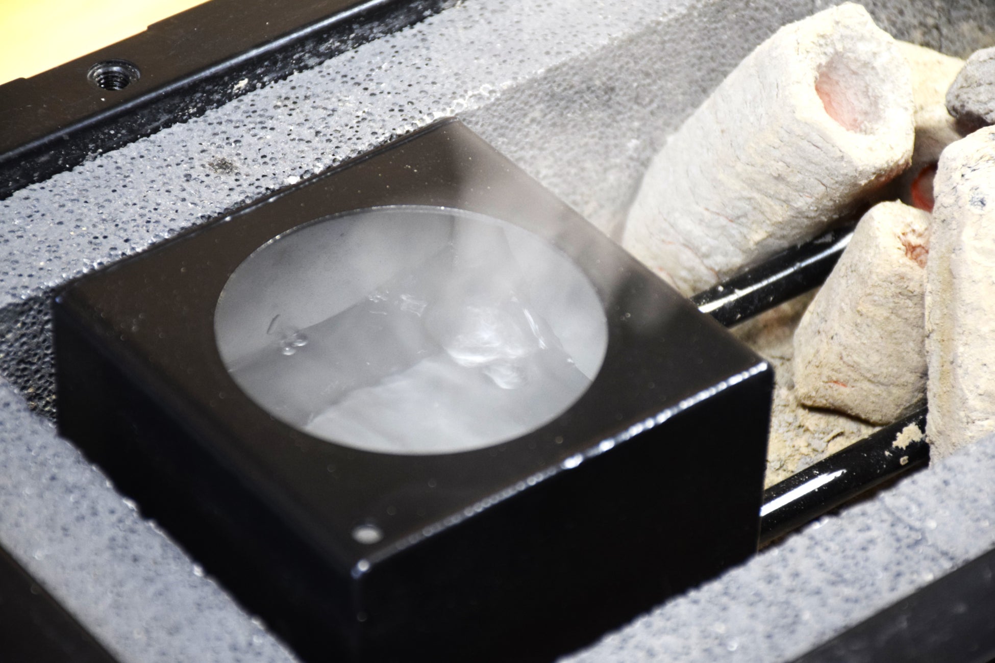 水を入れてパイプに炭火を置き、しばらくすると湯が吹き出してきます。