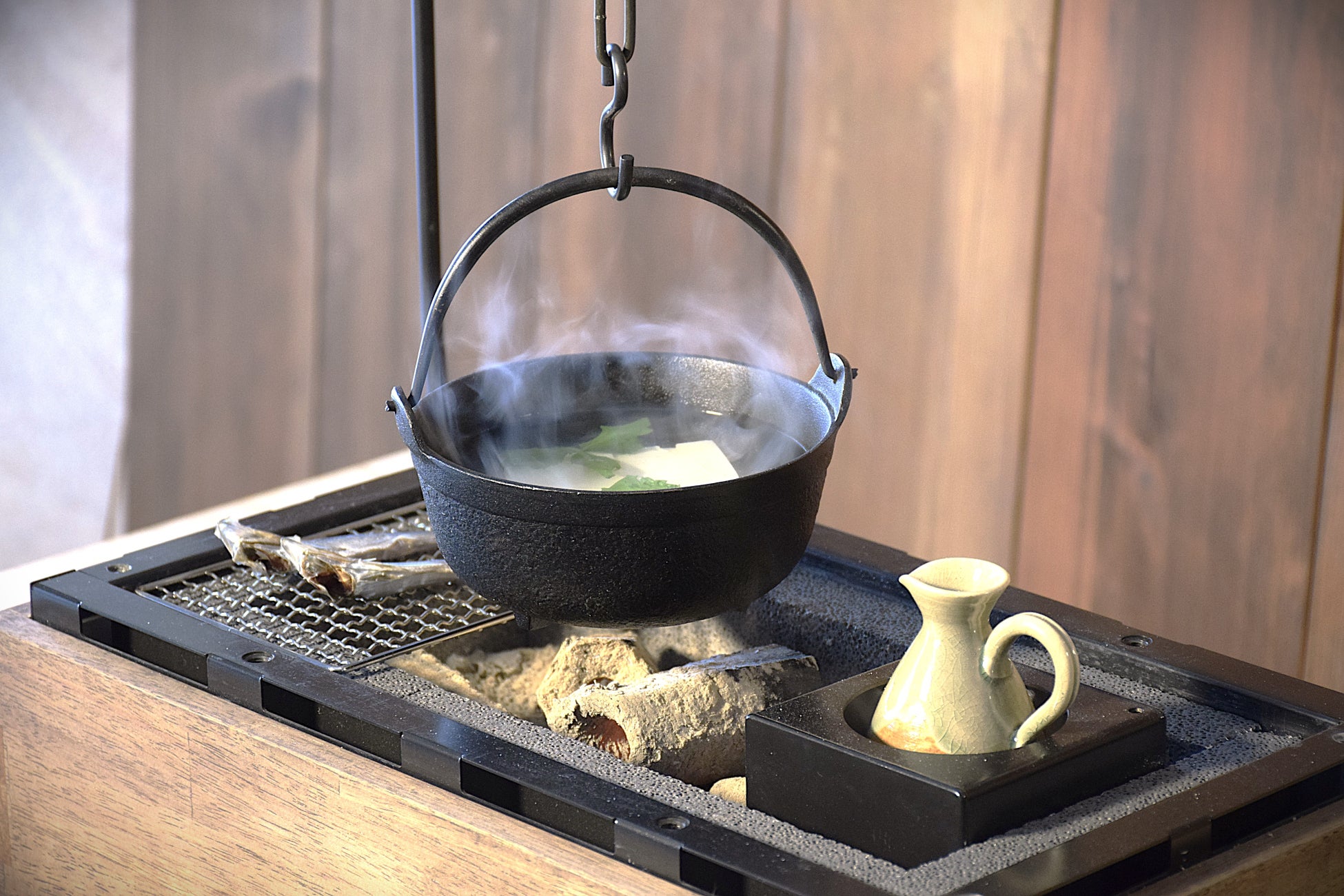 炭をおこし、鍋をかけ、酒を温め、魚を焼く。