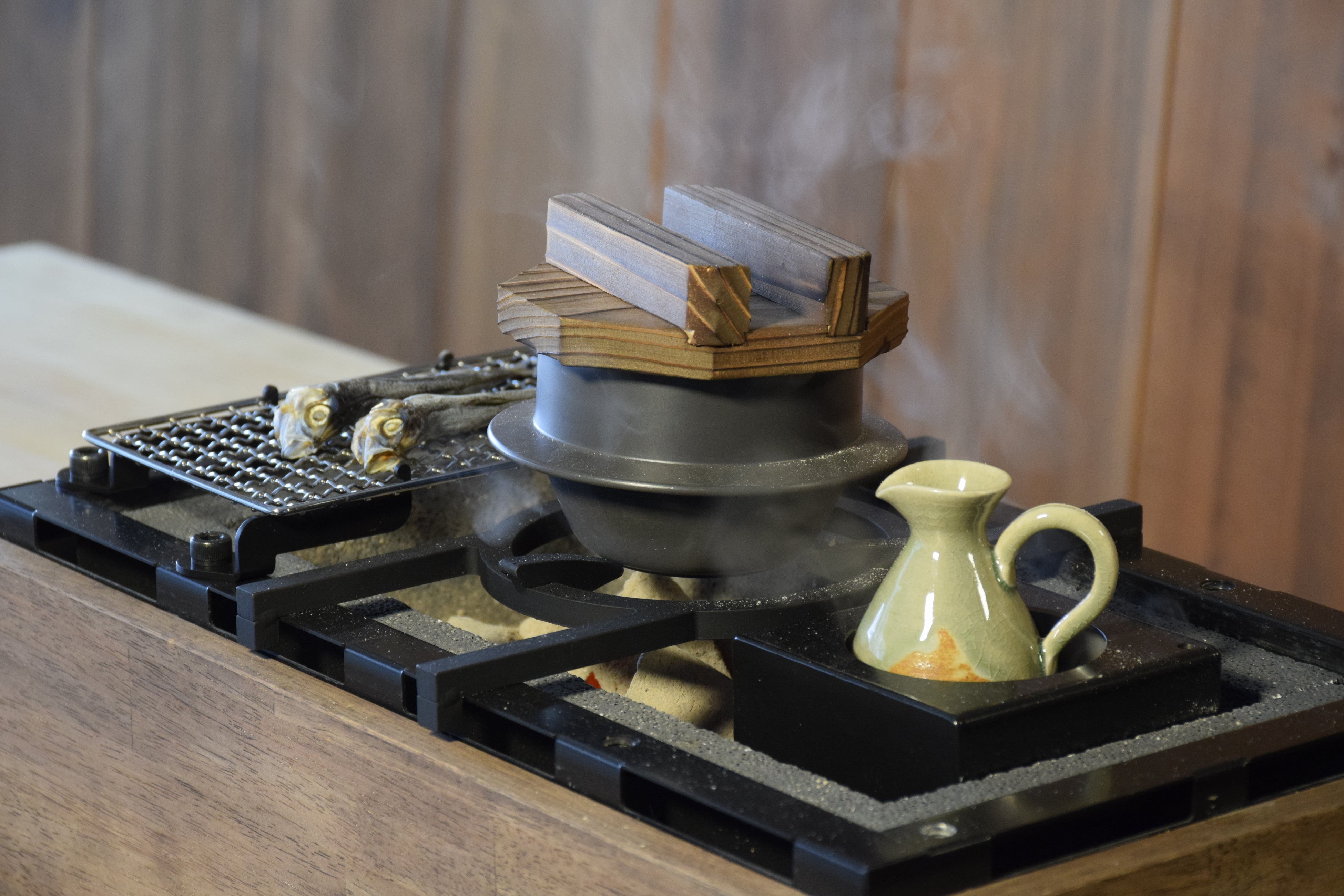 七輪・囲炉裏・火鉢などの日本の炭火文化を結集し、日本の伝統美と機能性を兼ね備えた一台として完成いたしました。