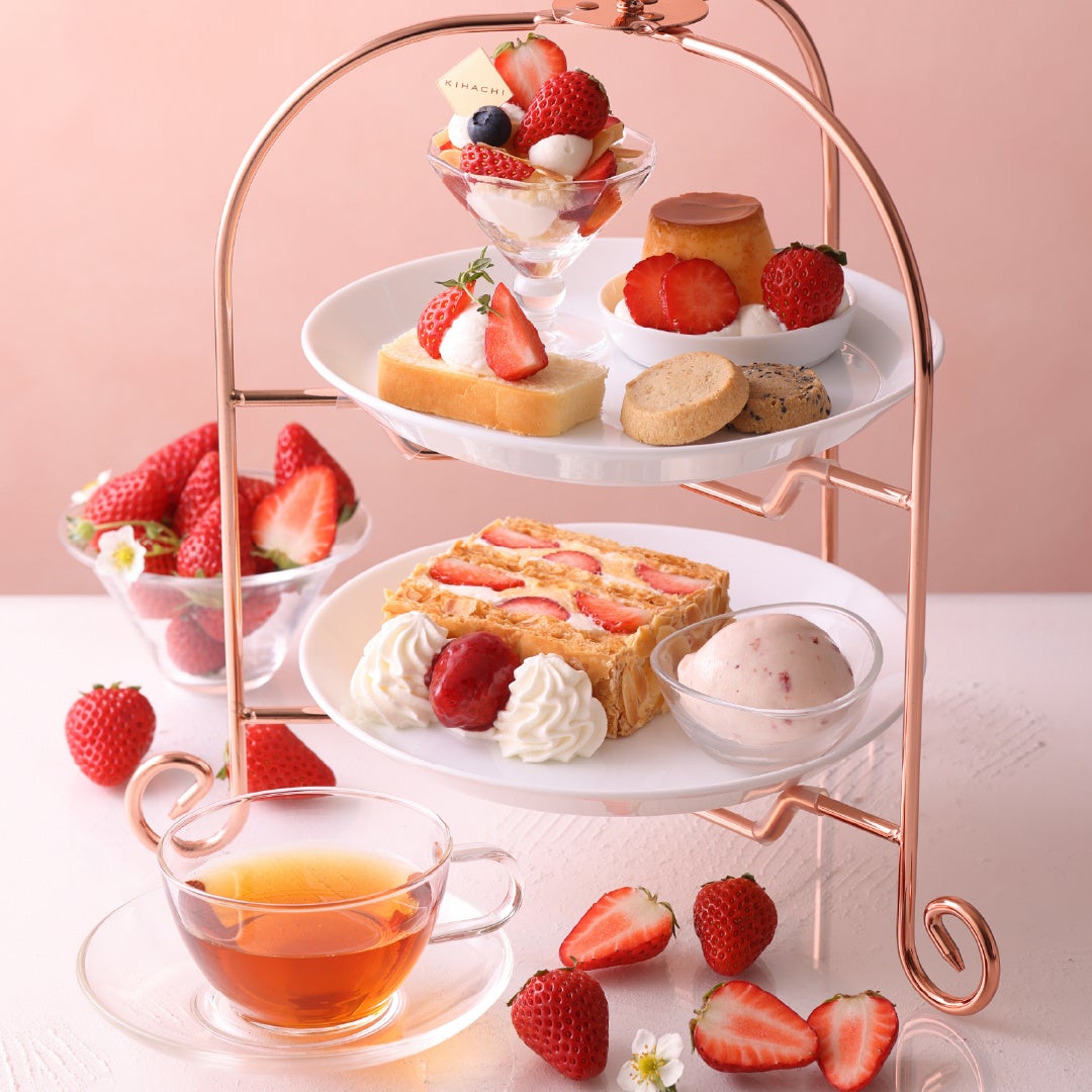 「苺のミニパフェ」や「苺のプリン・ア・ラ・モード」など個性豊かな苺スイーツが一度に楽しめる「季節のAfternoon Tea Set」もおすすめ。「KIHACHIのナポレオンパイ」がセットになったスペシャルバージョンも登場します。