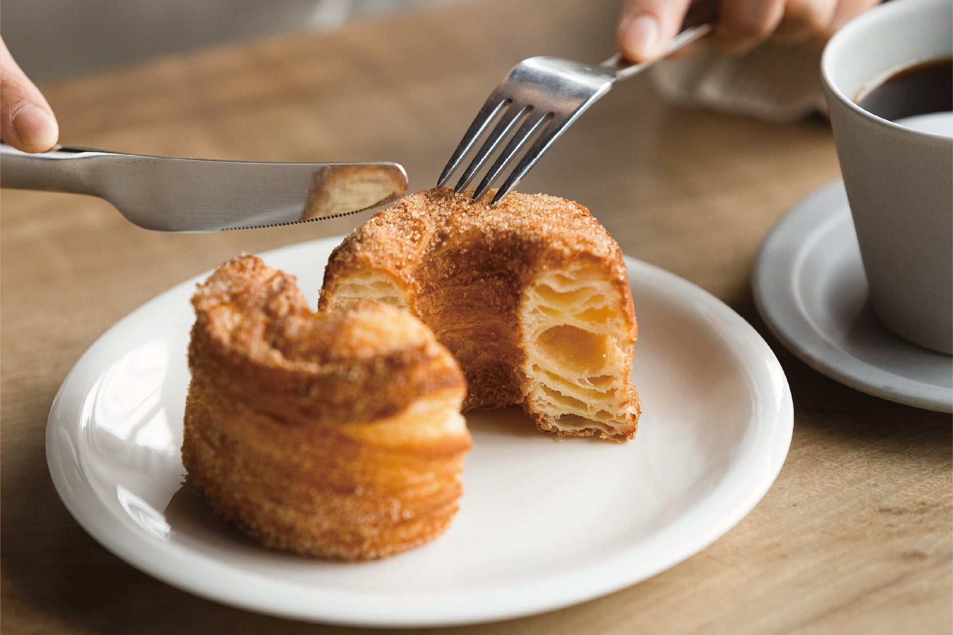 今回挑戦するのは、サクサク食感ドーナツ。バターとパイ生地を幾層にも重ね、高温で一気に揚げることで、焼いていないのに、焼き菓子のように軽い食感を実現。