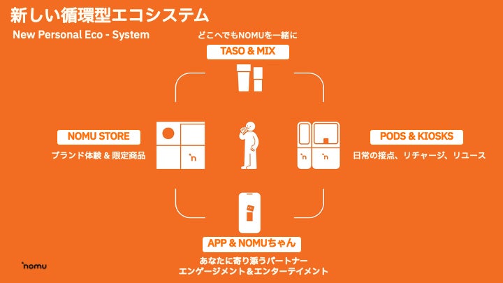 NOMUは、テクノロジーを活用し、ドリンクを手にするあらゆる瞬間の楽しさを重視した、NOMUだからこそ実現できるパーソナライズされた体験を提供することを通じ、社会の中、そして人々の日常の中に、喜び・創造性・つながりの瞬間を生み出してまいります。