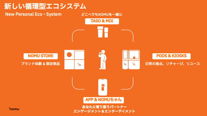 NOMUは、テクノロジーを活用し、ドリンクを手にするあらゆる瞬間の楽しさを重視した、NOMUだからこそ実現できるパーソナライズされた体験を提供することを通じ、社会の中、そして人々の日常の中に、喜び・創造性・つながりの瞬間を生み出してまいります。