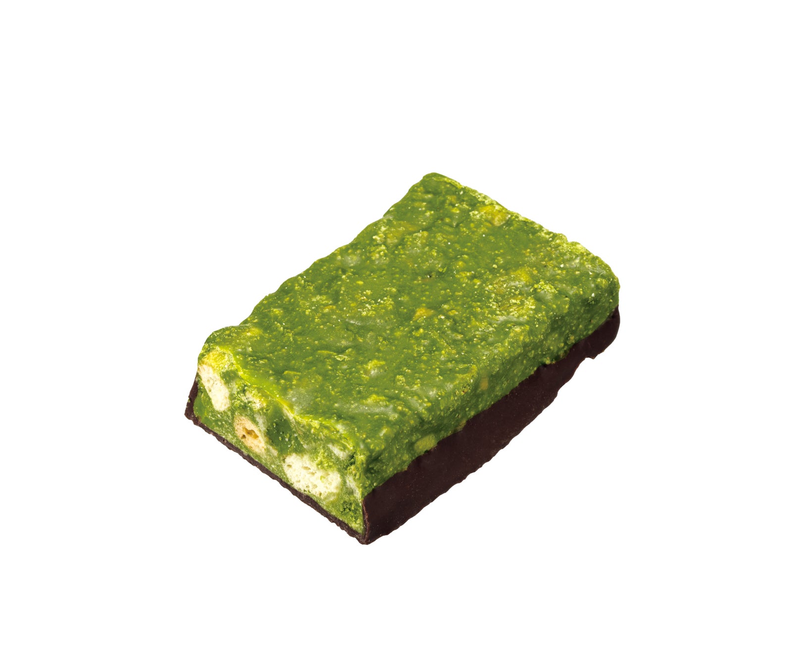 国産抹茶を使用した抹茶風味チップを配合し、濃厚な抹茶の味わいをお楽しみいただけます。宇治抹茶パウダーと抹茶風味チップの味わいが口の中で広がり、深い抹茶の余韻を楽しめます。また、ビターなチョコレートを下部のみにコーティングすることで、食べ進めるほどに抹茶の味わいが引き立ちます。