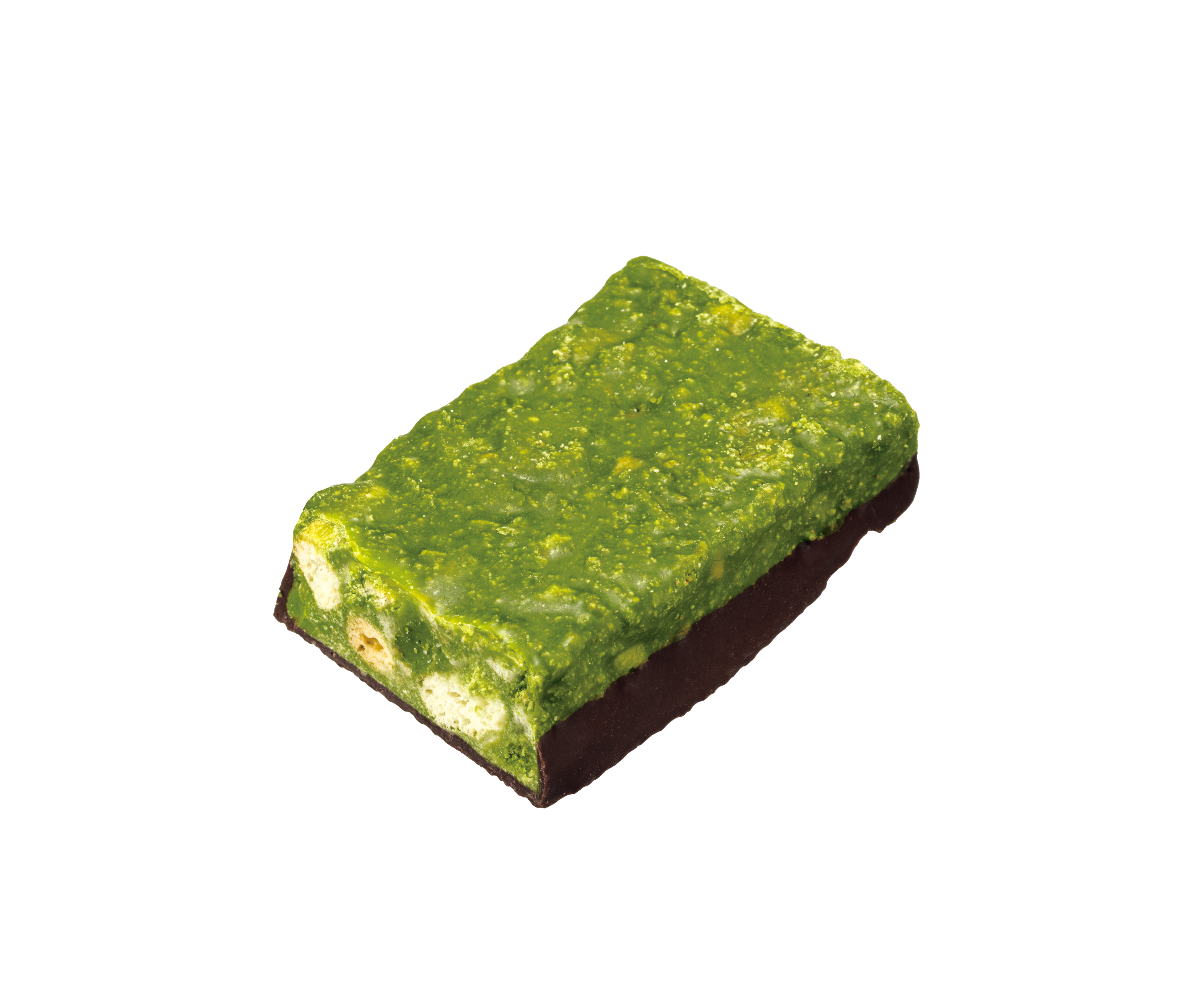 国産抹茶を使用した抹茶風味チップを配合し、濃厚な抹茶の味わいをお楽しみいただけます。宇治抹茶パウダーと抹茶風味チップの味わいが口の中で広がり、深い抹茶の余韻を楽しめます。また、ビターなチョコレートを下部のみにコーティングすることで、食べ進めるほどに抹茶の味わいが引き立ちます。