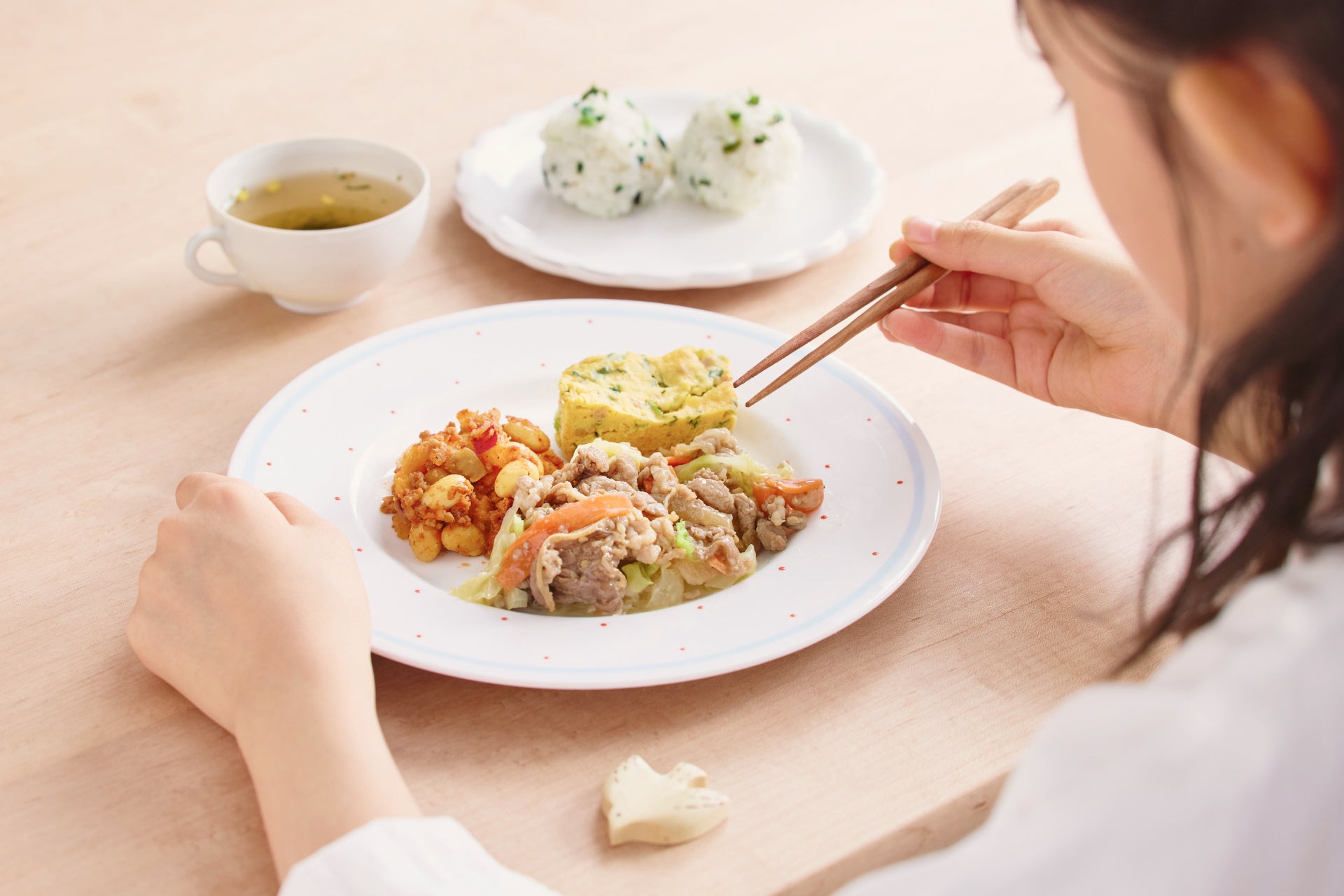 たんぱく質10g以上、カルシウム平均70mg以上、塩分2.0g以下を基準に設計。主菜1品と、副菜2品のメニューで構成されており、成長期に必要な栄養バランスと食べ応えを両立しました。