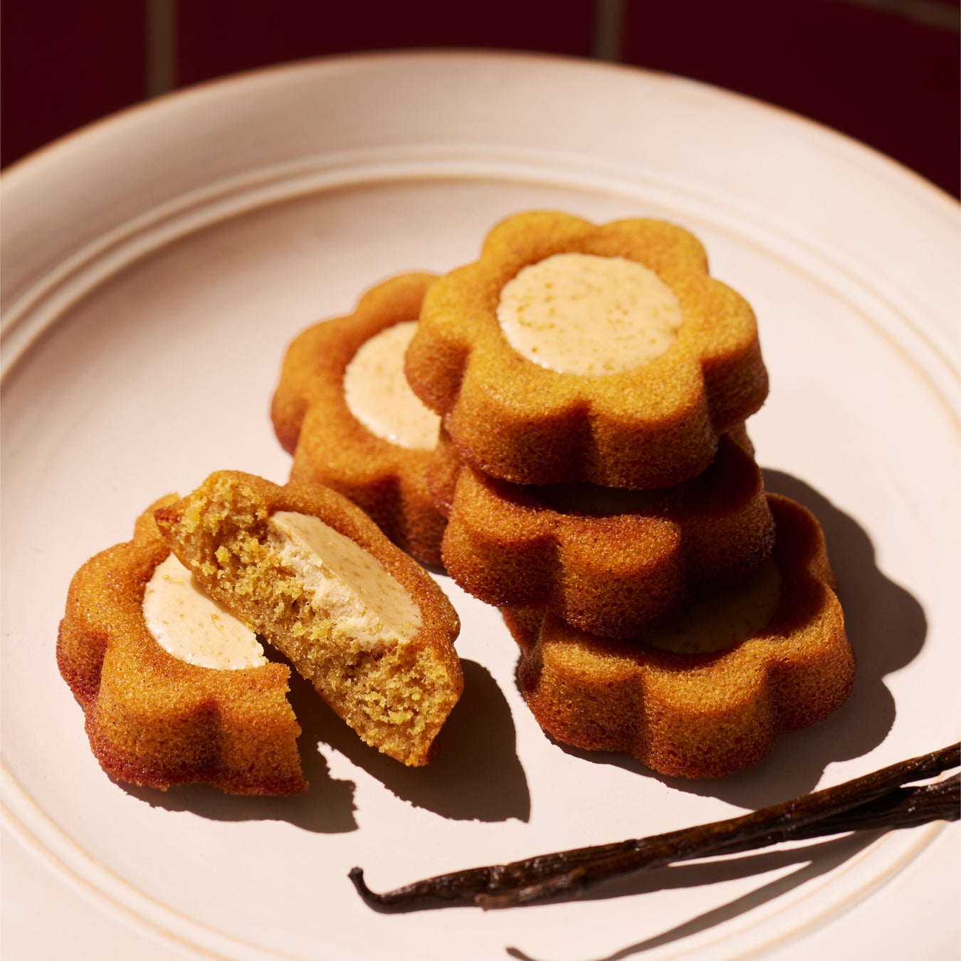 マダガスカル産バニラとグラスフェッドバターを練り込んだバニラ薫る生地に、チョコレートを満たした、コク深い味わいの花型ケーキ。