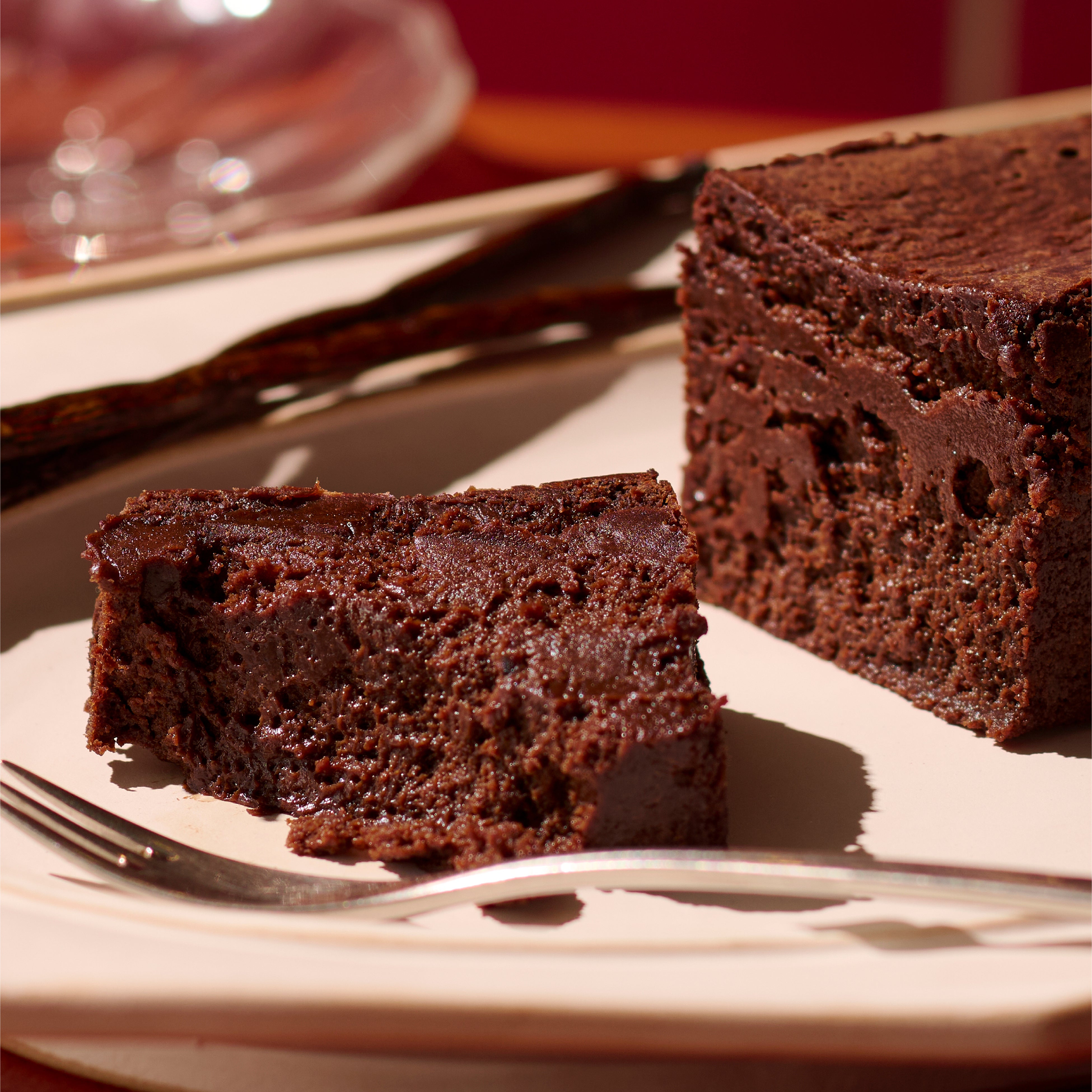 2つのチョコレート(スペイン製カカオ66%と40%)を重ねたビターで濃厚なテリーヌ。