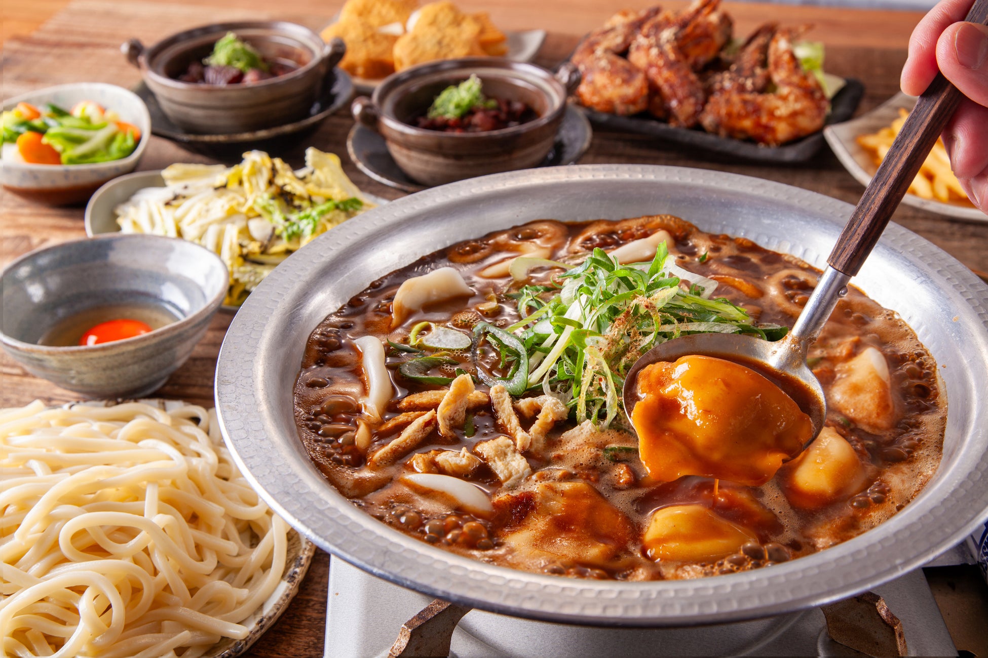 塚田の鶏どて煮、若鶏の手羽先唐揚げなど名古屋限定メニューをたっぷり堪能できるコースをご用意しました 。名古屋の食文化を象徴する味噌煮込みの風味で、旨味が溶け出したスープを最後の一滴まで堪能できます 。〆はもちろん味噌煮込みうどん!