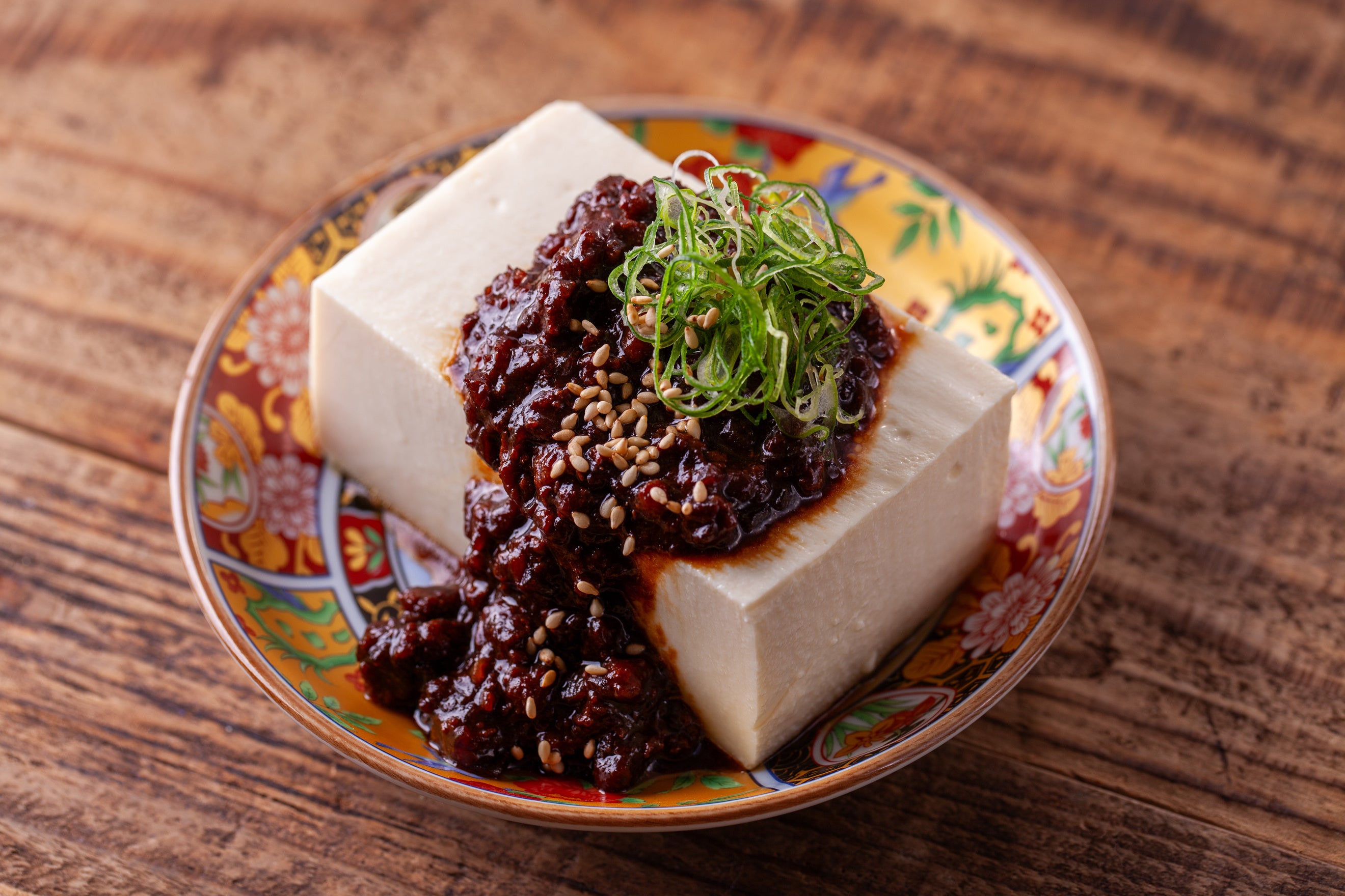 大豆の風味を感じる滑らかな食感の豆腐にごろっと肉肉しい鶏ミンチをたっぷり加えた特製の赤味噌をあわせました。