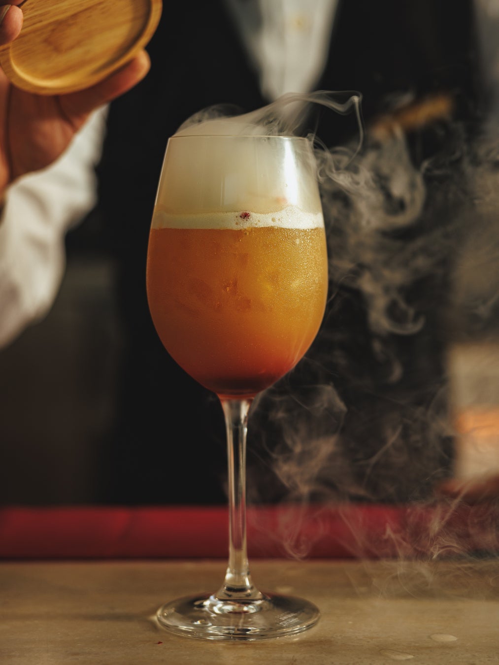 「DAWN OF GREENWICH」は、クエルボ1800 アネホにパインやライム、シェリー酒のフルーツなどを合わせ、グレナデンシロップやシナモン スモークで仕上げるテキーラサンライズです。NYで“ヴィレッジ”の愛称で親しまれるマンハッタンの古き街 グリニッジ・ヴィレッジの、静けさと活気が交差する朝の情景を、クエルボ1800 アネホとスモークによるヴィンテージな趣とフルーツのフレッシュでモダンなニュアンスの共存を表現。古い街並みを朝の光が照らし始める瞬間の落ち着きと、新しい一日の始まりを感じさせます。