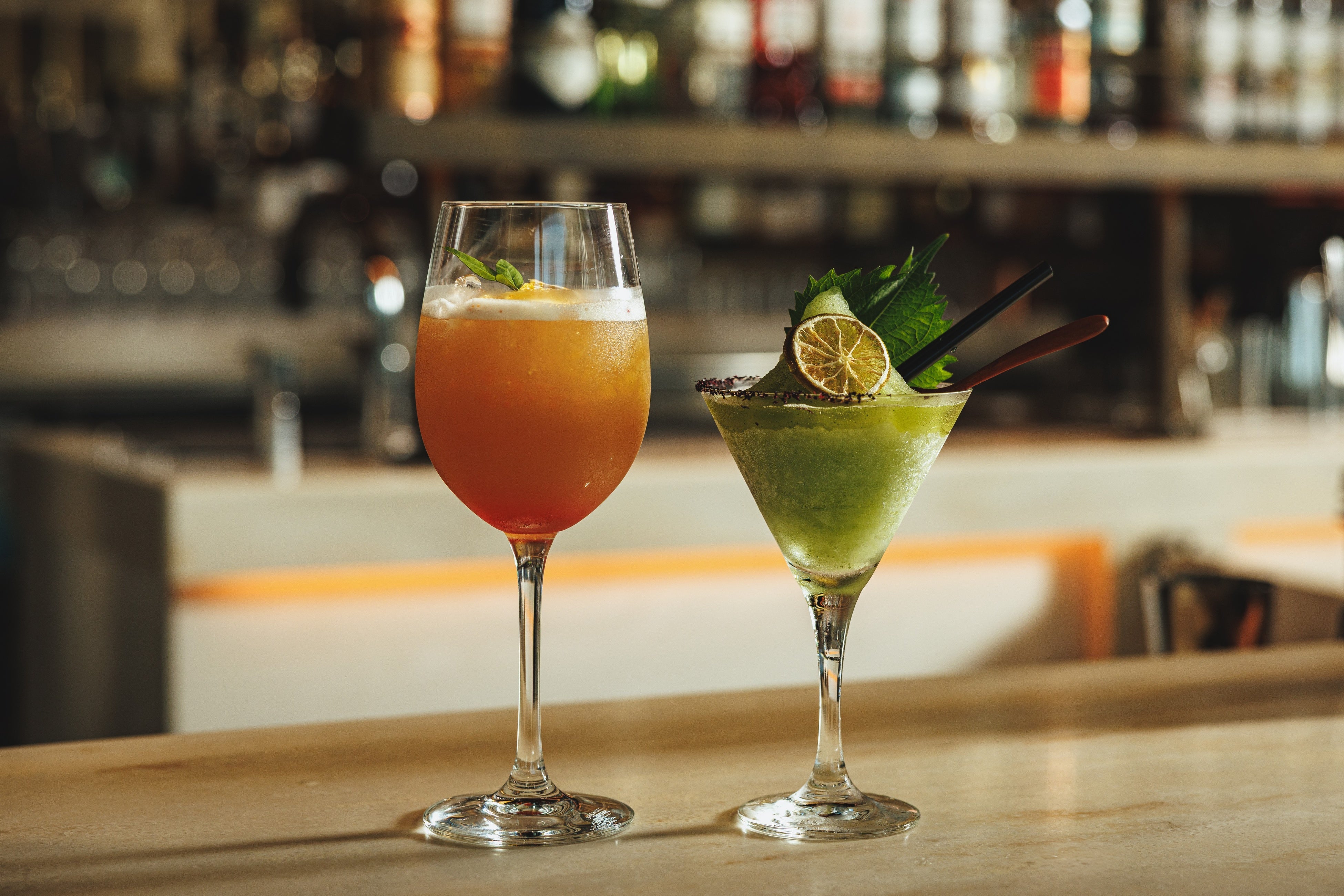 「MISATY NEW YORK」は、クエルボ1800 プラタにオレンジリキュールやライム、そして和山葵や大葉を加えたフローズンマルガリータです。洗練された雰囲気と幻想的な街明かりが交差する霧がかる夜のNYの情景を、想像力を掻き立てる素材で、ミステリアスで幻想的な自然の調和として表現。ステーキとの相性も良い和山葵と爽やかな大葉の余韻が、静かで美しい響きを予感させます。