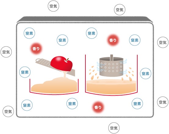 JAアオレン : 青森りんごの風味を最大限引き出すための無酸素下で搾汁する「密閉搾り製法」。