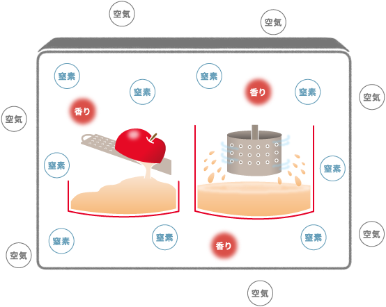 ②【製法】無酸素下で搾る「密閉搾り」りんご果汁