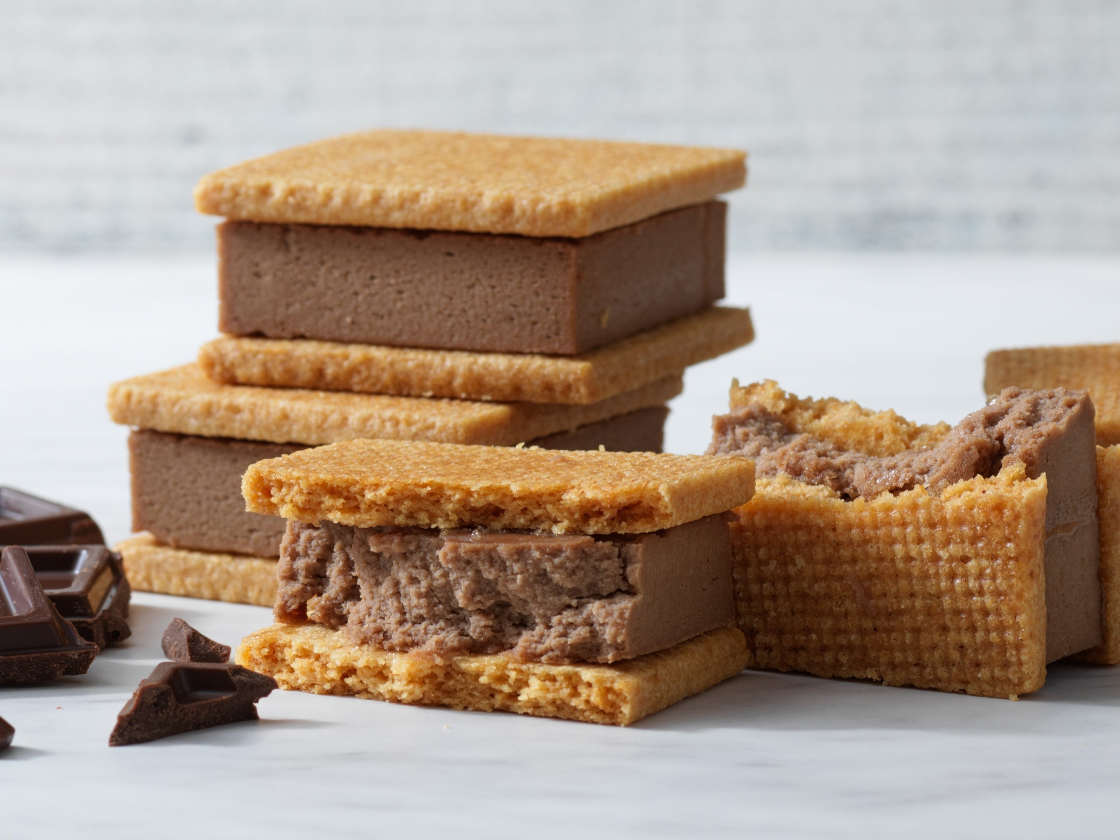 ヘーゼルナッツとアーモンドの2種のナッツペーストを合わせたナッティショコラベイクドチーズケーキを、香ばしく焼き上げたアーモンドサブレでサンドしました。ナッツの芳醇な味わいがチーズのコクと調和し、チョコレートの奥深さを引き立てました。