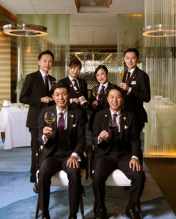マンダリン オリエンタル 東京では、一般社団法人日本ソムリエ協会が認定するソムリエ資格を保有するスタッフが各レストラン&バーで活躍しています。その中で、マンダリン オリエンタル 東京の5000本を超えるワインの管理やワインリストの作成、ワインプログラムやワイン・日本酒などのイベントの企画立案・開催を行うのが、ディレクターオブワイン 野坂昭彦(のさか あきひこ)が率いるソムリエチームです。野坂は、2023年に一般社団法人日本ソムリエ協会主催「第10回全日本最優秀ソムリエコンクール」で優勝し、イギリスで創設された国際資格である「The Court of Master Sommelier」における「Advanced Sommelier Certificate」を日本人で有する数少ない一人です。日本のソムリエ業界をリードする存在として、その卓越した技術と知識で業界に貢献しています。