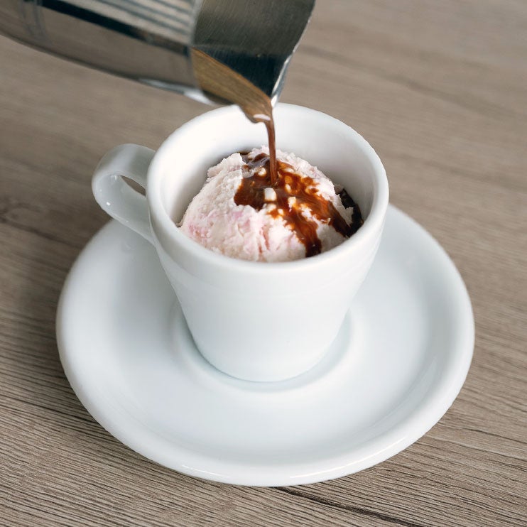 (※渋谷スクランブルスクエア店は販売しておりません)桜の花びらの塩漬けを贅沢に練り込んだ、香り高い桜アイスクリームへ、フルーティーな酸味と華やかさを持つロクメイコーヒー自慢の浅煎りブレンドのエスプレッソをトッピング。甘さ×塩気×ほろ苦さの贅沢なマリアージュを存分にお楽しみいただけます。桜の塩漬けのほのかな塩気が、アイスの優しい甘みを引き立てるアクセントに。熱々のエスプレッソが重なると、冷たさと温かさが溶け合い、一気に奥行きのある「大人のデザート」です。