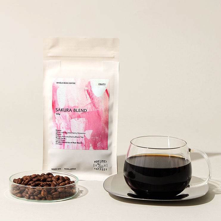挽きたての粉からは、まるで満開のさくらが風に舞うような華やかな香りがふわっと立ち上がります。ひと口含むと、アプリコットのような甘くまろやかな口当たりが広がり、エチオピア産「ナチュラル」と「ウォッシュド」の2種が織りなす調和が心地よく続きます。温度が落ち着くにつれ、味わいはより瑞々しく変化し、さくらんぼのような軽やかな果実感と、すっきりとした甘さの余韻が心地よく残ります。さくら餅やお団子など、春の和菓子とのペアリングは格別です。