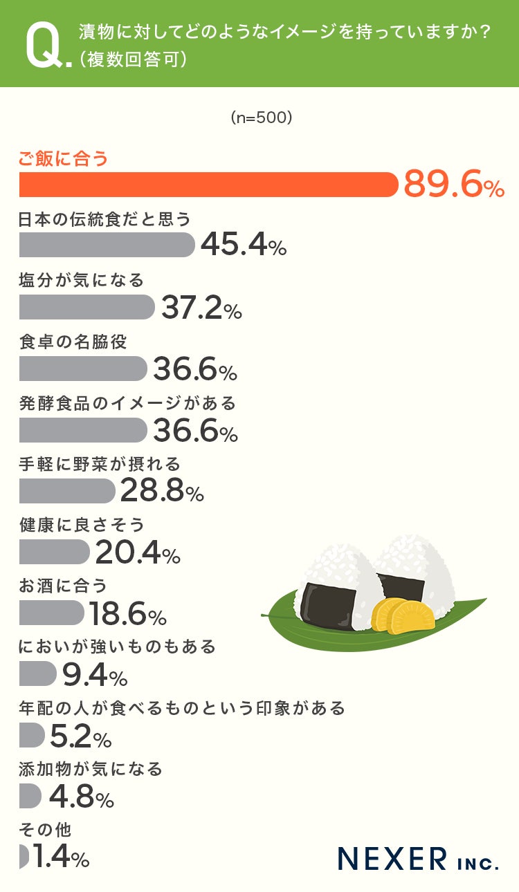 ■89.6%が「ご飯に合う」と回答、漬物へのイメージ調査