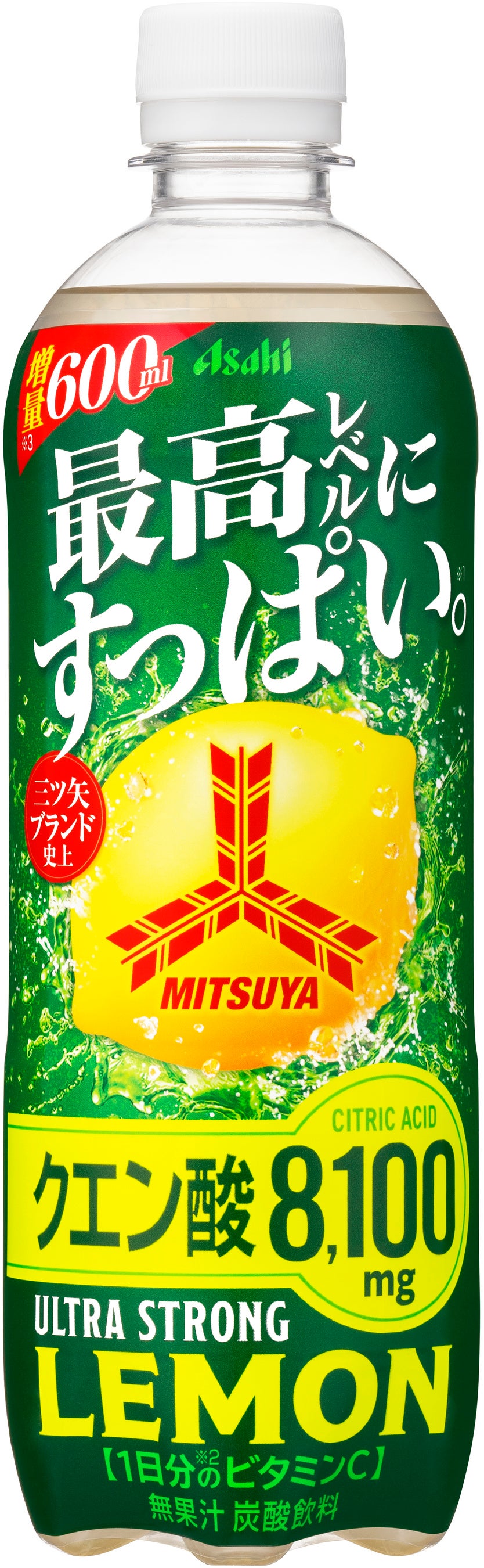 『三ツ矢ウルトラストロングレモン』は、クエン酸8,100mg※2と1日分のビタミンC※3を配合した炭酸飲料です。「三ツ矢」ブランド史上最高レベルにすっぱいレモン味と強炭酸による爽快な味わいが楽しめます。食塩相当量0.19g/100mlを含有しており、熱中症対策にも適しています。