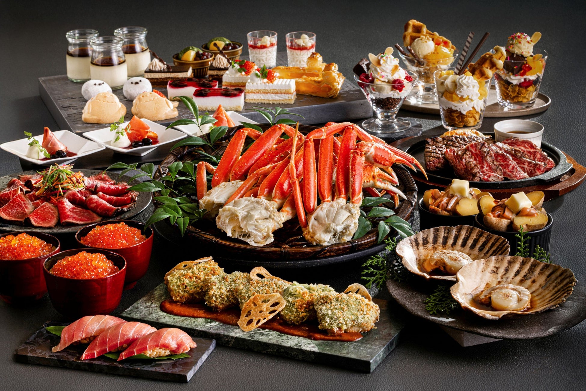 ご家族三世代やご友人同士で、お好きなものをお好きなだけ楽しむなら「コンパス」のブッフェがおすすめです。現在開催中の北海道フェアでは、ブランド肉の「米愛豚(まいらぶた)」や「本ずわい蟹」など、北の大地の恵みが勢揃い。お子様からシニアの方まで満足いただける多彩なラインナップは、気兼ねないお祝いの席を一層盛り上げます。