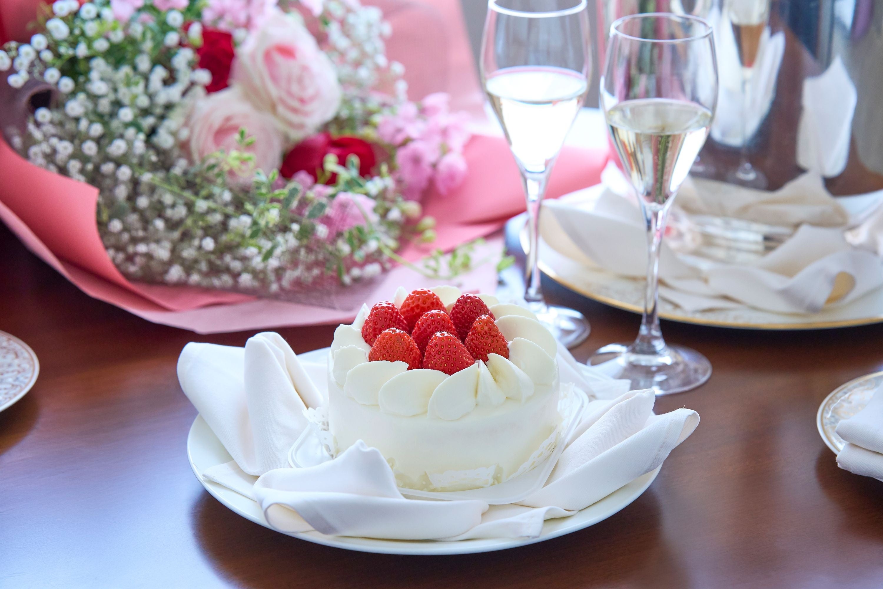 レストランでの美食の余韻に浸りながら、プライベートな空間でさらに特別な思い出を作りませんか。大切な方のお誕生日や記念日、プロポーズなど、一生の記憶に残るひとときを演出する「セレブレーションステイ」をご用意いたしました。お部屋のドアを開けた瞬間に広がるのは、華やかなバルーンデコレーションの世界。ベッドサイドやベッド上を彩るバルーンは、ピンク、ゴールド、ブルーなどお好みのカラーをお選びいただけます。さらに、サプライズでお届けするホテル特製ホールケーキが、豪華なお祝いシーンをより一層盛り上げます。お部屋全体が祝福に包まれる贅沢なステイ。大切な方への想いを形にする、ホテルならではのアニバーサリーをぜひお楽しみください。