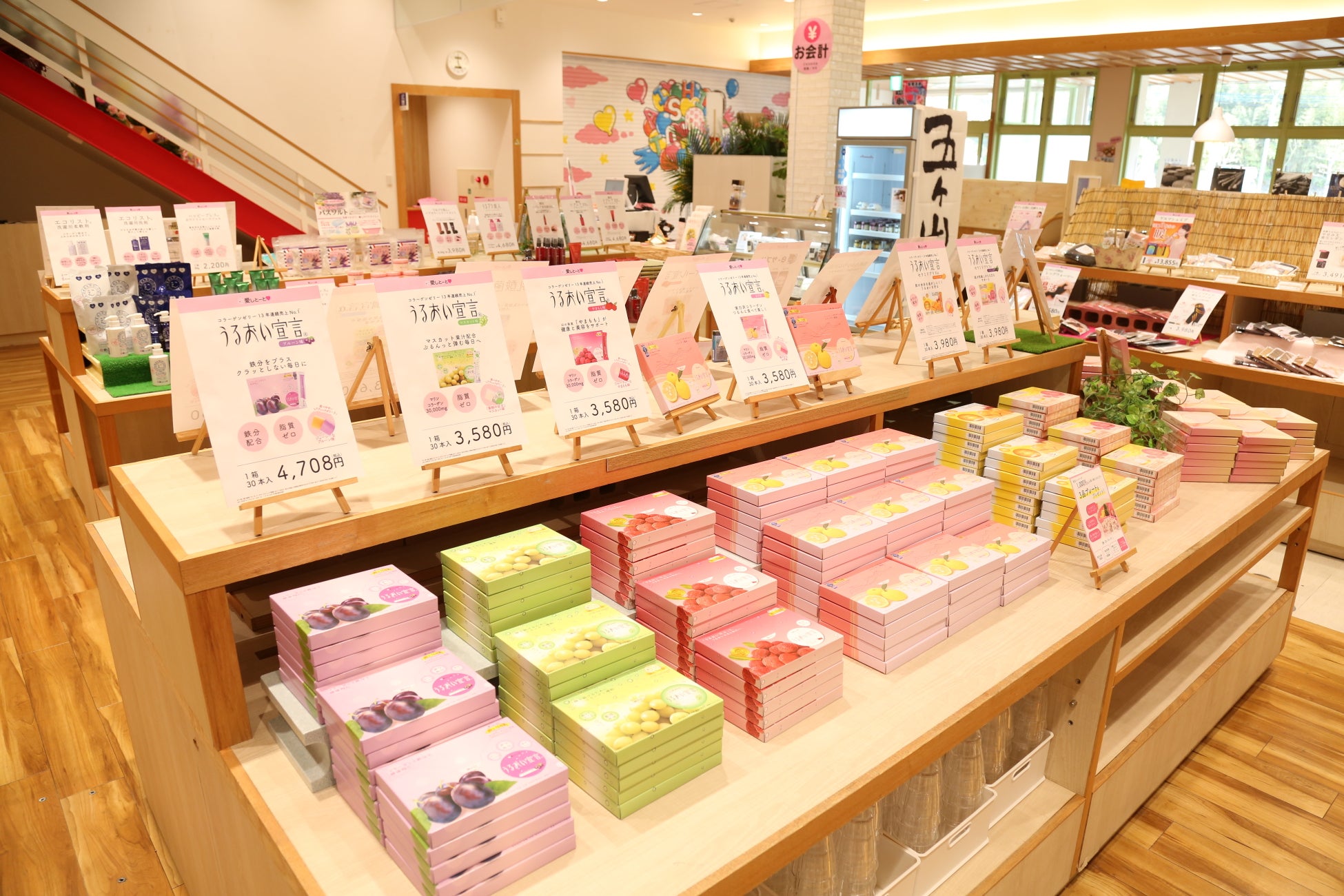 ・通販人気商品も販売: 通信販売で人気のコラーゲンゼリーや基礎化粧品、健康食品もその場ですぐにお買い求めいただけます。