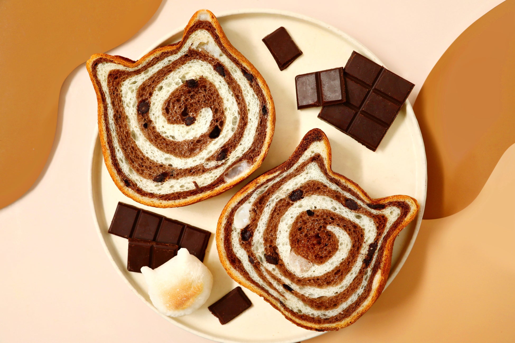 このたび、「ねこねこ食パン」から期間限定で『ねこねこ食パン チョコもっちー』が新登場。チョコを練り込んだ生地にチョコチップを混ぜ込み、水を使用せずミルク100%で仕上げたプレーン生地を重ねて、ぐるぐる模様に焼き上げました。心癒されるようなふんわりやさしい甘みで、新生活が始まる春の季節にぴったりです。