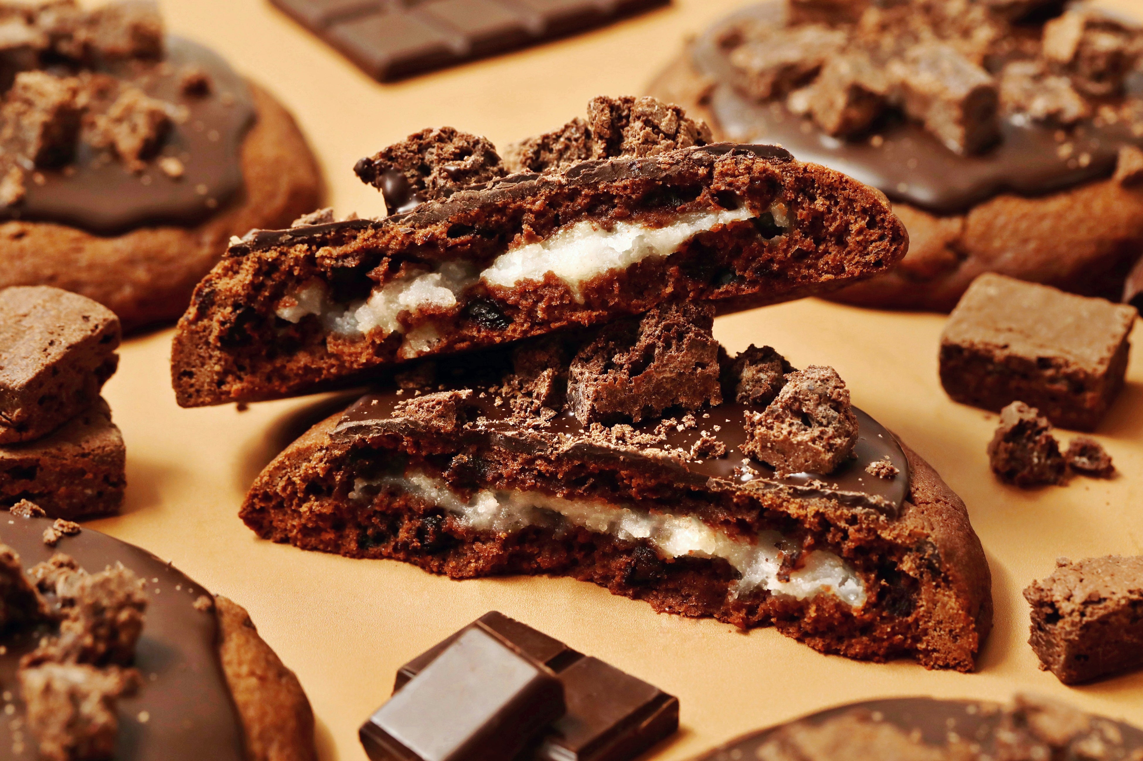 憧れつめこんだ、ビッグソフトクッキー。ドロッと溶けるマシュマロ。ジュワッと染み込むキャラメルソース。ゴロッと乗った厚切りのベーコン。夢のようなトッピングを、じっくり焼いたおっきなクッキーで。今日はカロリーを気にせずおやつでお腹いっぱいにしちゃおう。“GUILTY”感じる時間も、みんなで分け合えば、おっきな幸せ♡