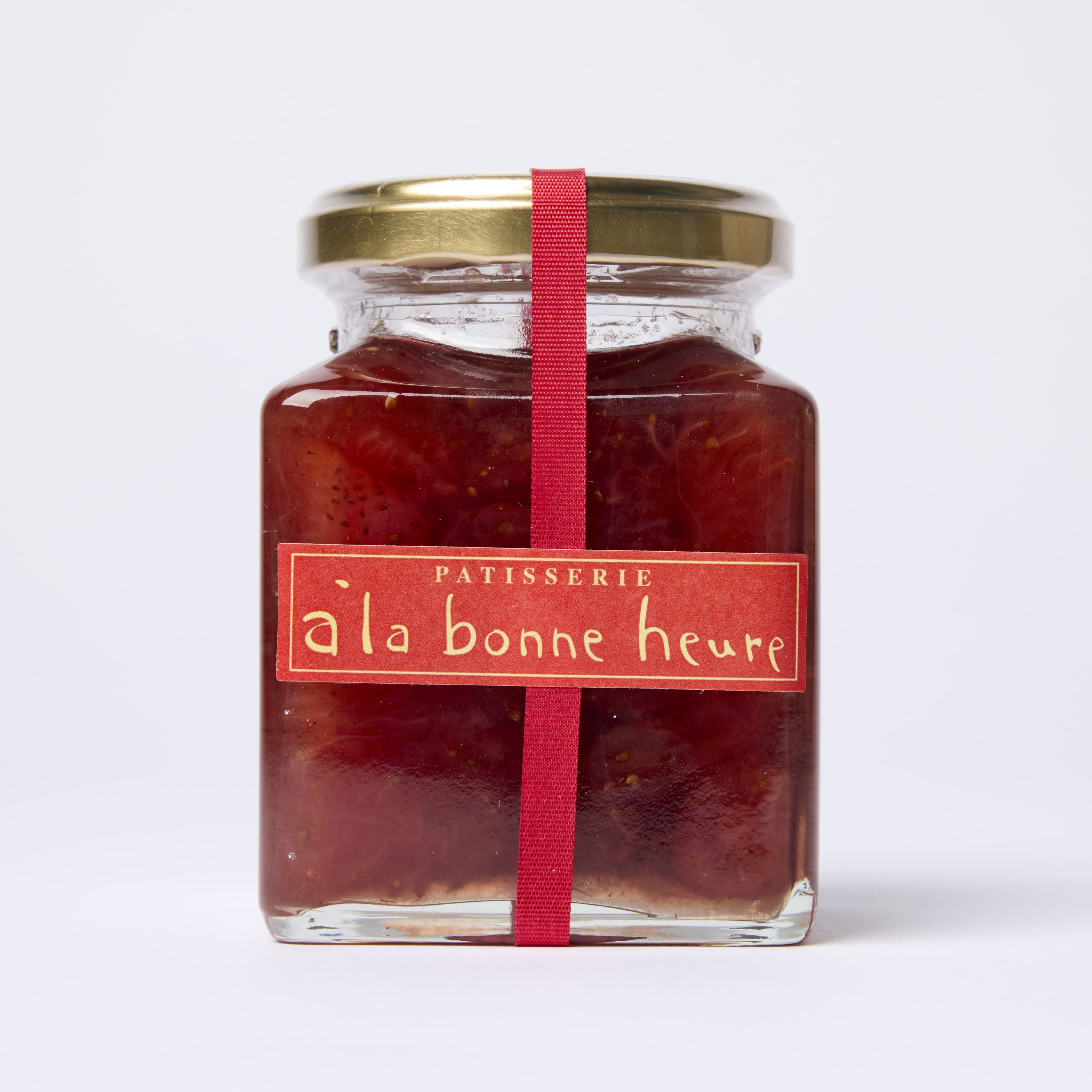 赤坂に店を構えるパティスリー「アラボンヌー(à la bonne heure)」のストロベリージャム。国産のいちごを使い、果実のやさしい甘みと香りを引き出した、シンプルで飽きのこない味わいに仕上げました。トーストやヨーグルトに添えて、朝の食卓でたのしめる一品です。