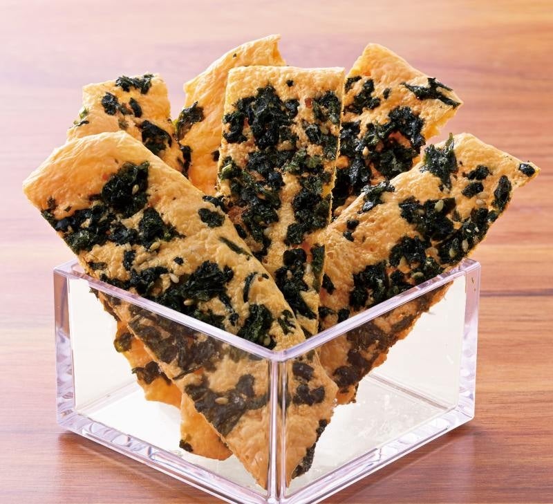 「bibigo かけて食べる韓国のり」とチーズを合わせた、パリパリとした軽い食感が特徴。おつまみに最適な風味豊かな一品です。
