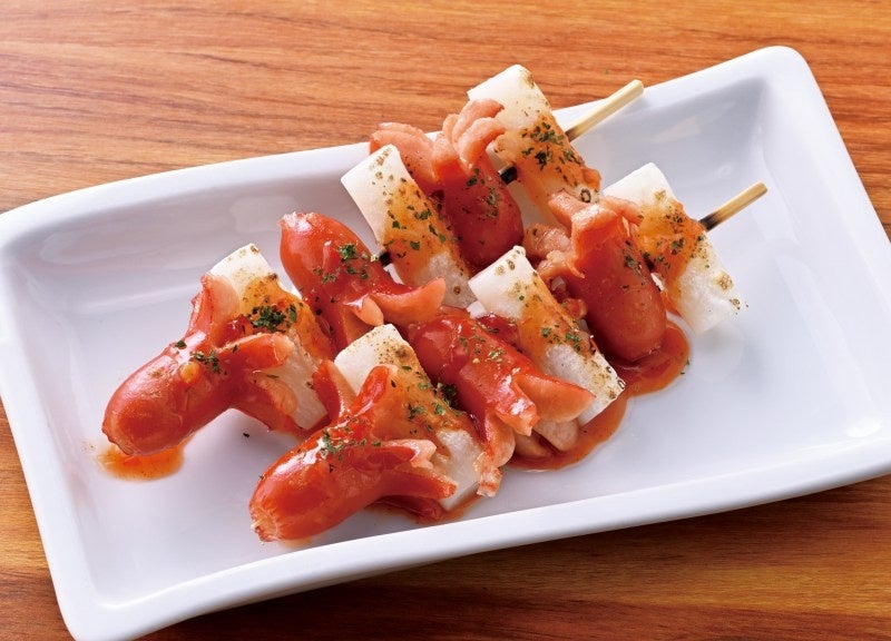 本場韓国のトッポギ(餅)とソーセージを串に刺した定番おやつ。たこさんウインナーの見た目も楽しく、甘辛いコチュジャンソースが後を引きます。