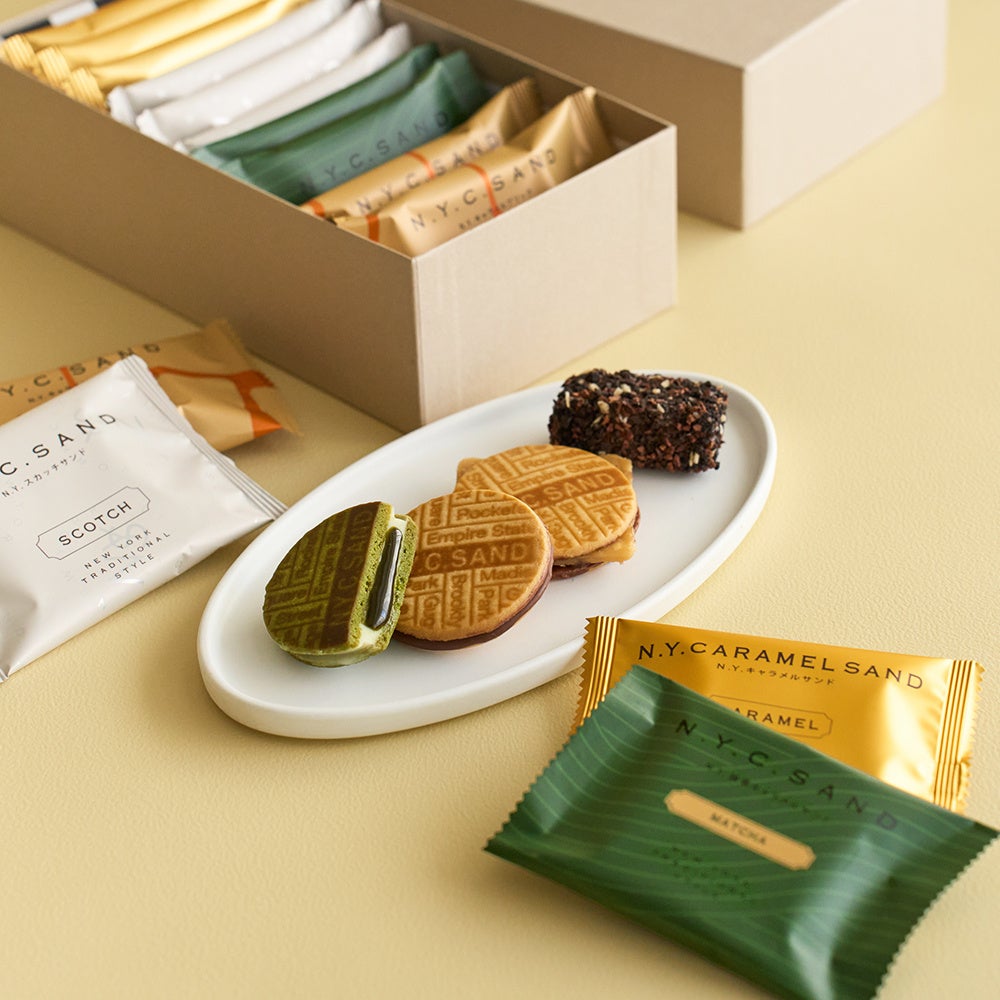N.Y.C.SANDそごう横浜店限定で「N.Y.抹茶キャラメルサンド2個入」「N.Y.C.S.ギフトボックス10個入」を販売いたします。ちょっとしたプレゼントや少しずついろいろな種類をお楽しみになりたい方へおすすめです。