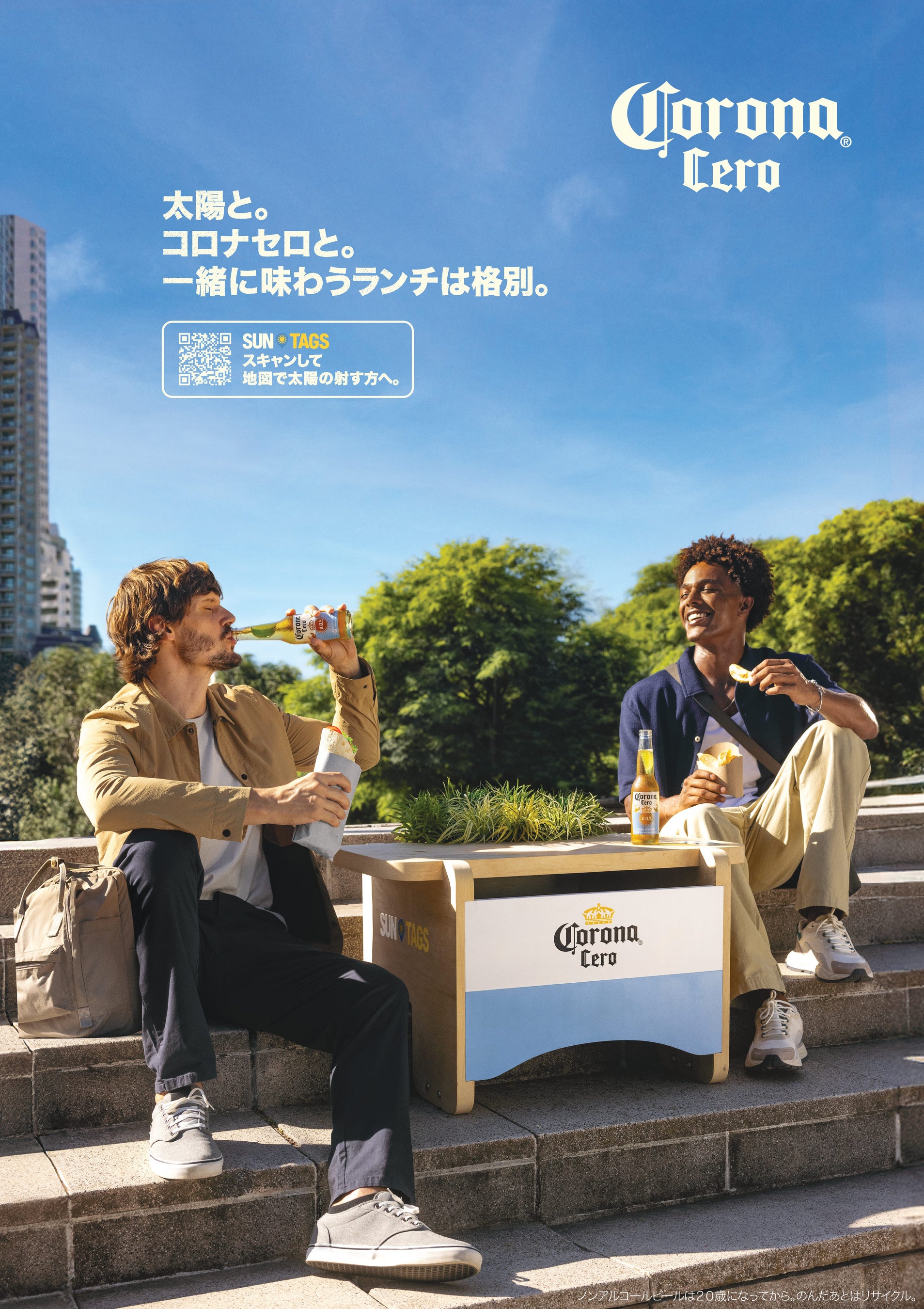 リモートワークからオフィスワークへの回帰が進む中、忙しい日常における職場の同僚とのコミュニケーションや、ワークライフバランスの取り方に改めて注目が集まっています。こうした背景のもと、コロナ セロは都市型の新たな取り組みとして「SUNTAGS」を発表。忙しい日常の合間にあるランチタイムを、屋外で太陽を感じながら過ごすリフレッシュできる特別なひと時へと変えることを提案します。