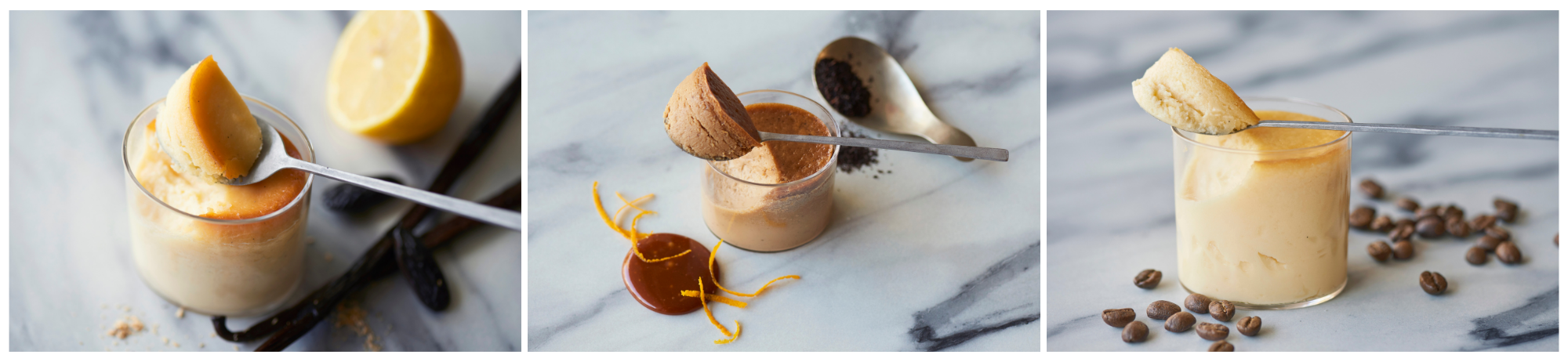 バニラ、レモン、トンカ豆を組み合わせたクリームを、ふわっと軽やかなダックワーズ生地にたっぷりと挟んだダックワーズサンド。Mr. CHEESECAKEのシグネチャーフレーバーを再現したレアチーズケーキのような甘く爽やかなクリームと、旨味のあるダックワーズ生地が重なる心地よい味わいをお楽しみください。