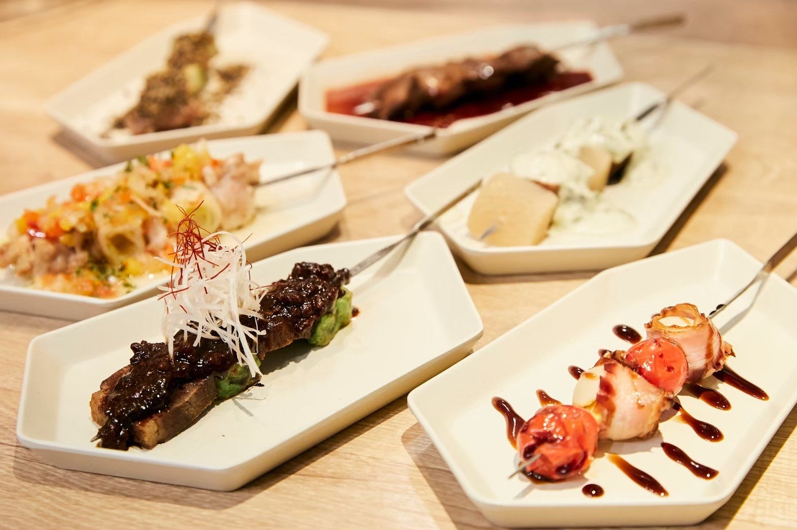 1本から注文OK。フレンチの料理をワンハンドの串焼きに仕上げました。