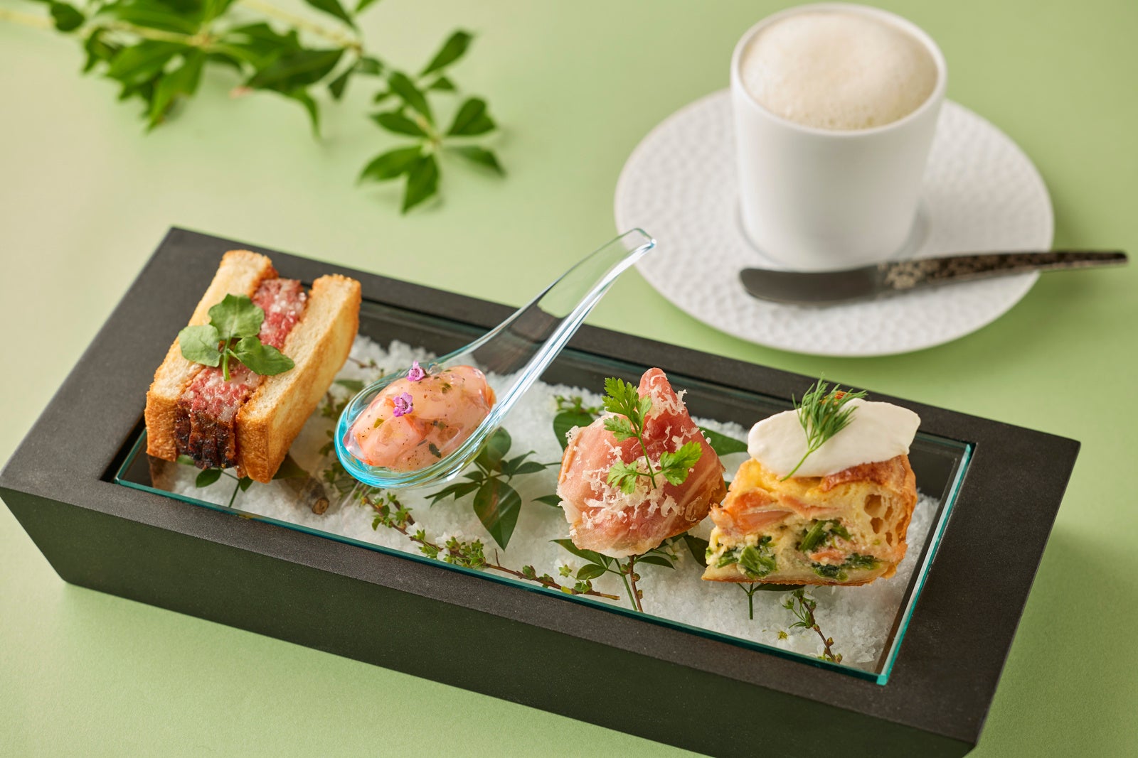 初夏の爽やかな空気に包まれながらお愉しみいただくのは、旬の食材を贅沢に取り入れ、輝く新緑のカラーに彩られたアフタヌーンティー。
