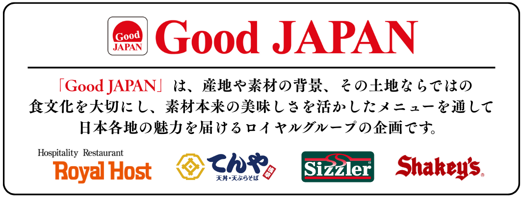 「Good JAPAN」は、産地や素材の背景、その土地ならではの食文化を大切にし、素材本来の美味しさを活かしたメニューを通じて日本各地の魅力をお届けするロイヤルグループの企画です。