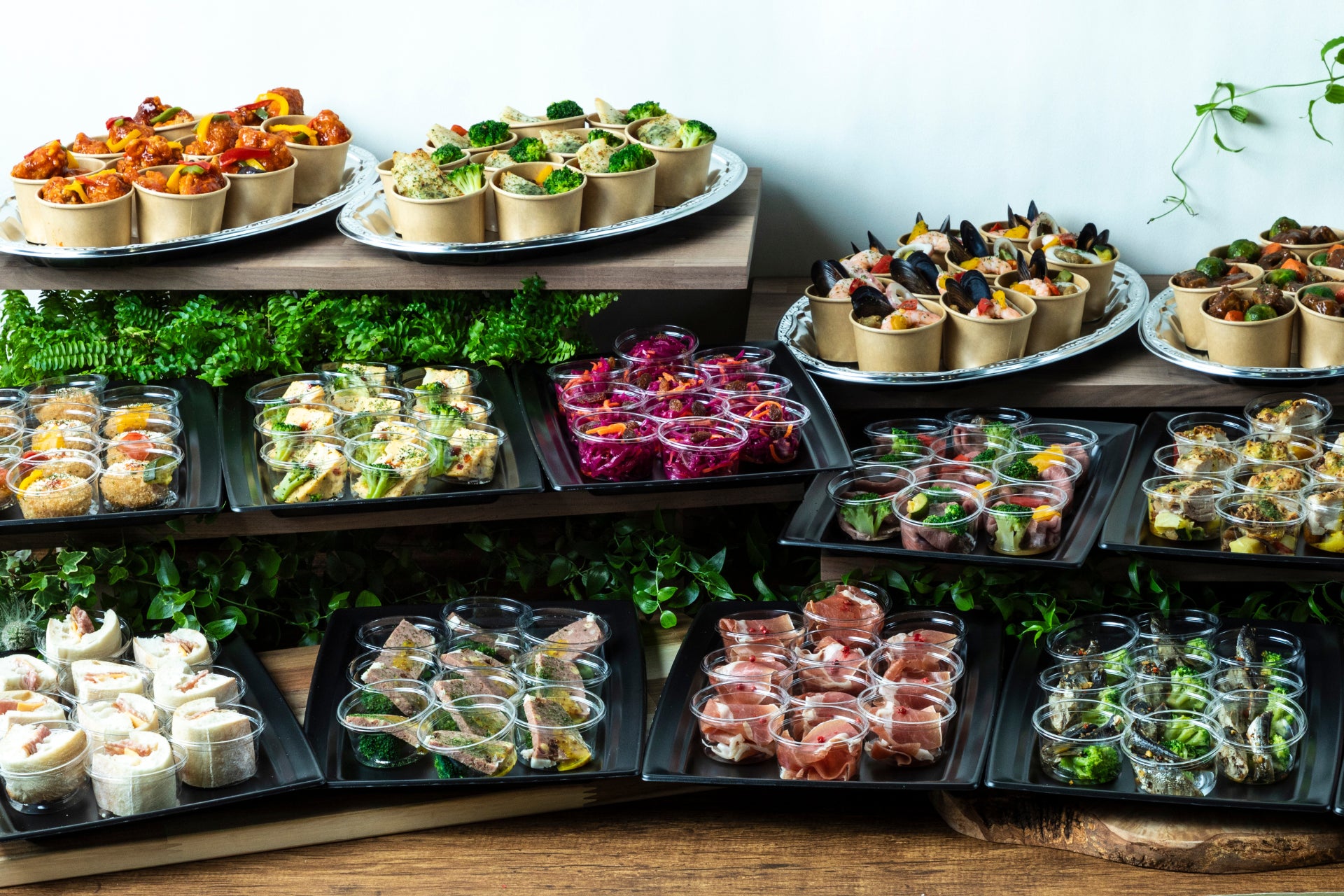 取り分けもラクラク: 盛り付け済みの状態でお届けし、取り分けやすい小分けから盛り合わせまで対応。
